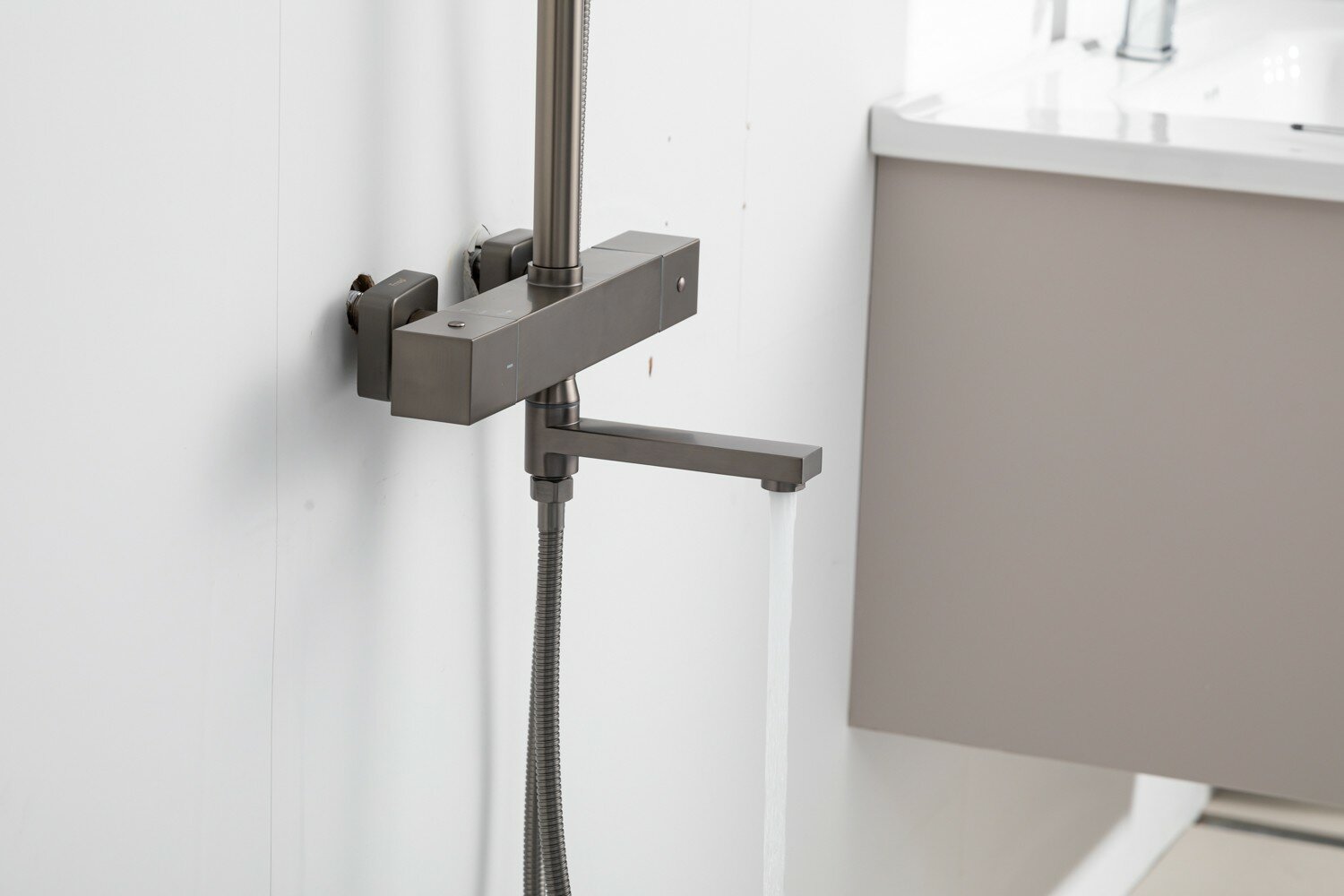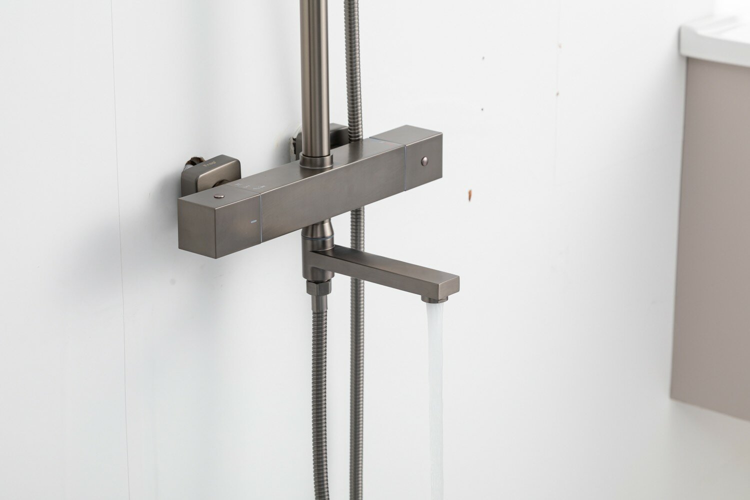 Купить Душевая стойка для ванны FRAP F24007-9 с термостатом, оружейная сталь, латунь