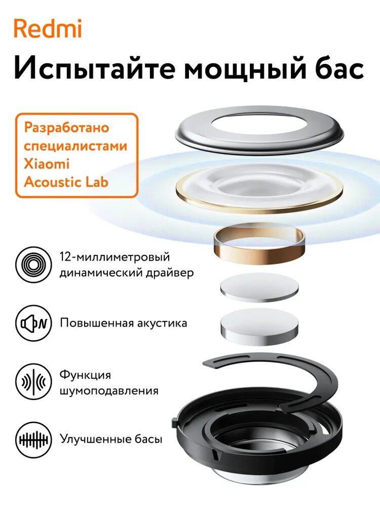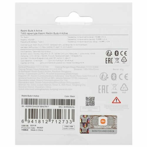 Беспроводные наушники Xiaomi Redmi Buds 4 Active RU, черный