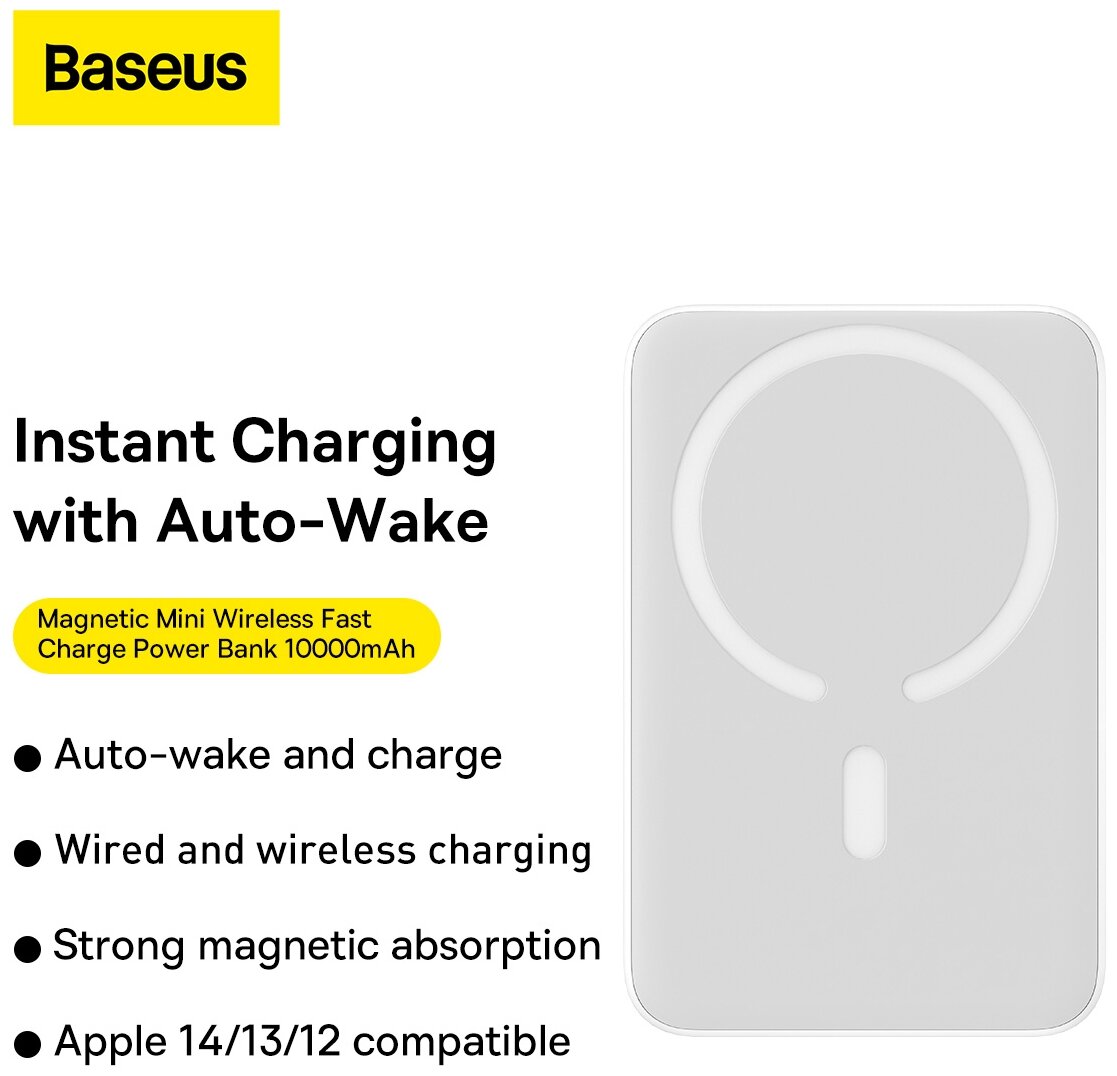 Baseus Внешний аккумулятор Baseus Magnetic Mini Wireless 10000mAh 20W PPCX030002 PPCXM10 белый