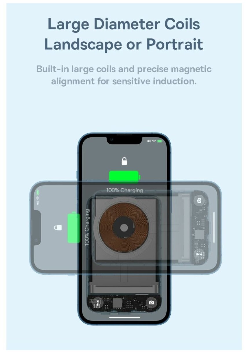 | Плюсы: | У меня Iphone XR с магнитным чехлом. Отлично держится на телефоне. Есть небольшой нагрев в процессе использования, но это особенности беспроводных технологий. |
