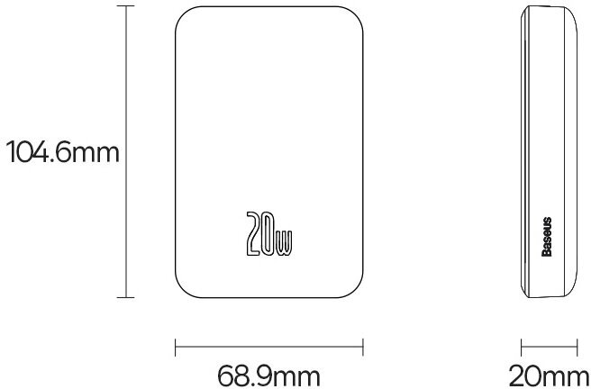 Внешний магнитный беспроводной аккумулятор BASEUS Magnetic Mini, 10000 mAh, 20W, с кабелем Type-C to Type-C 50 см, Черный, PPCX030001