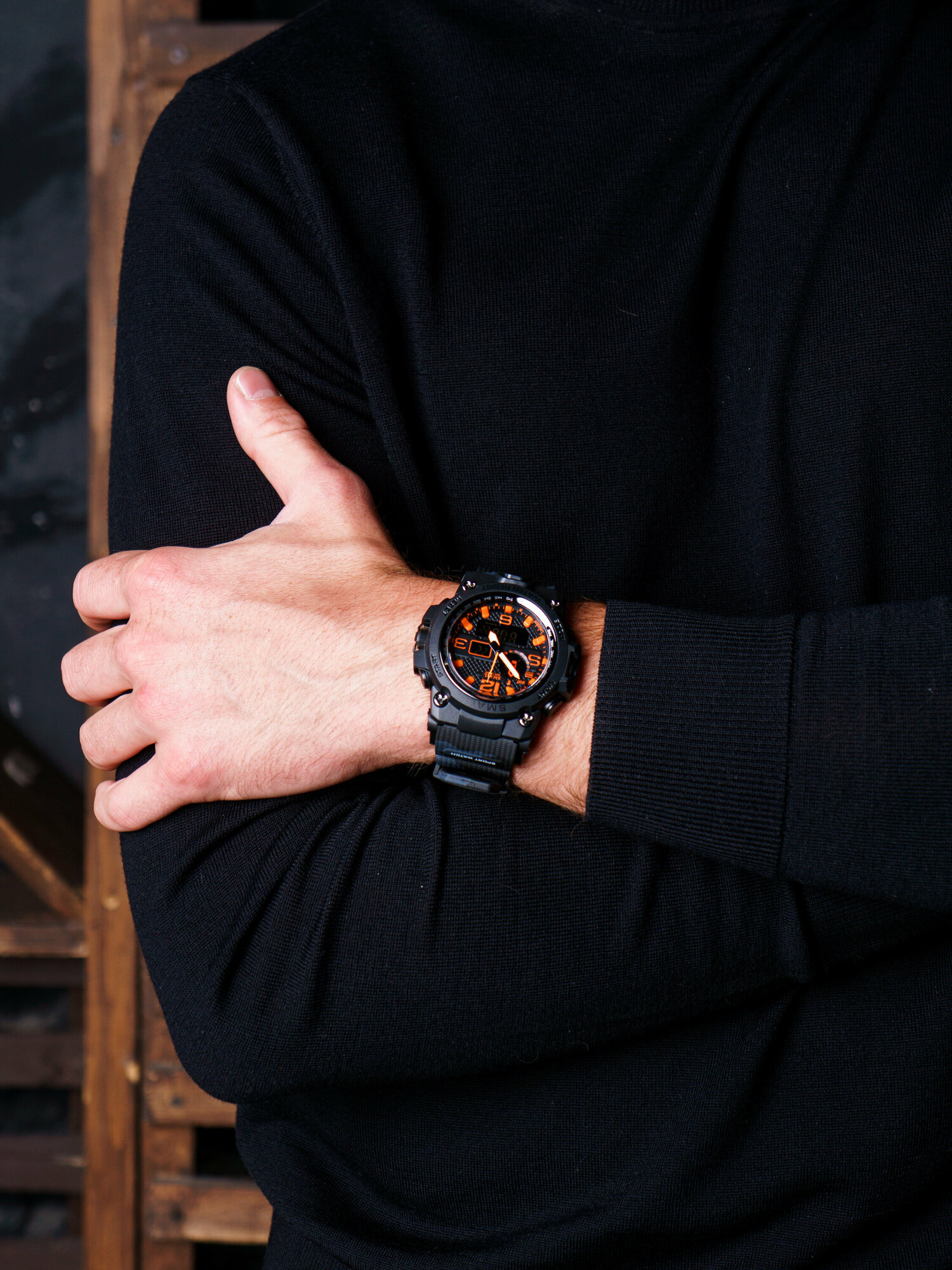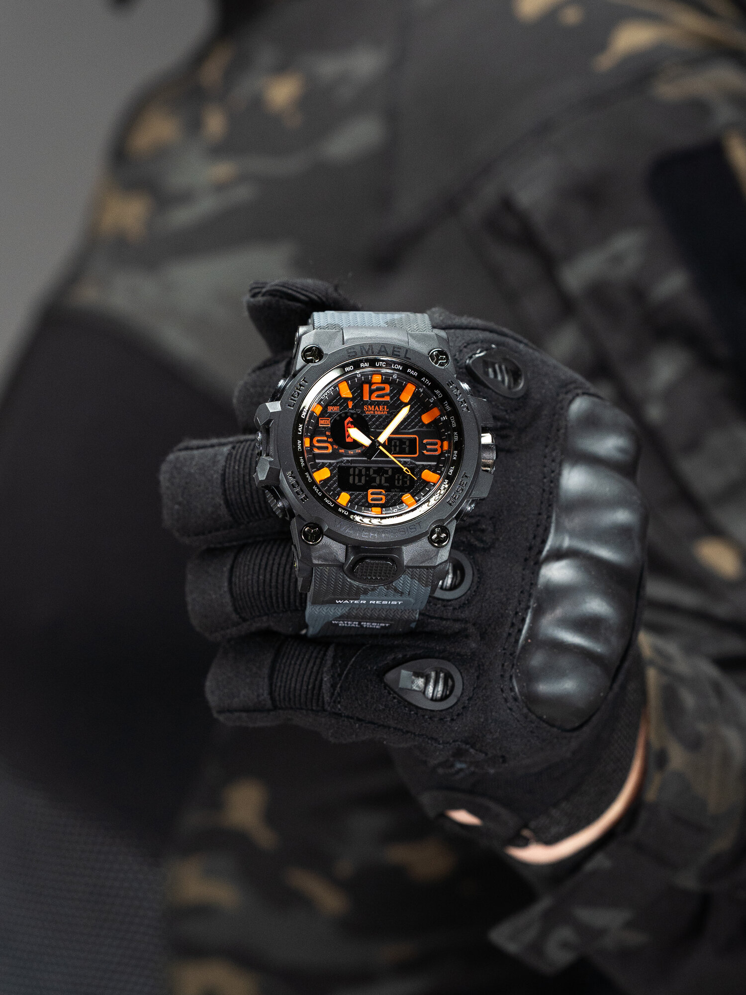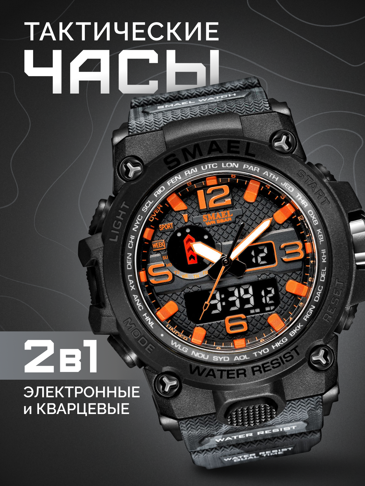 Часы мужские наручные тактические кварцевые электронные SMAEL SM1545 спортивные и водонепроницаемые, черные