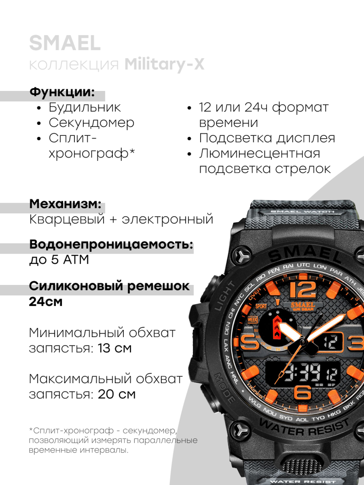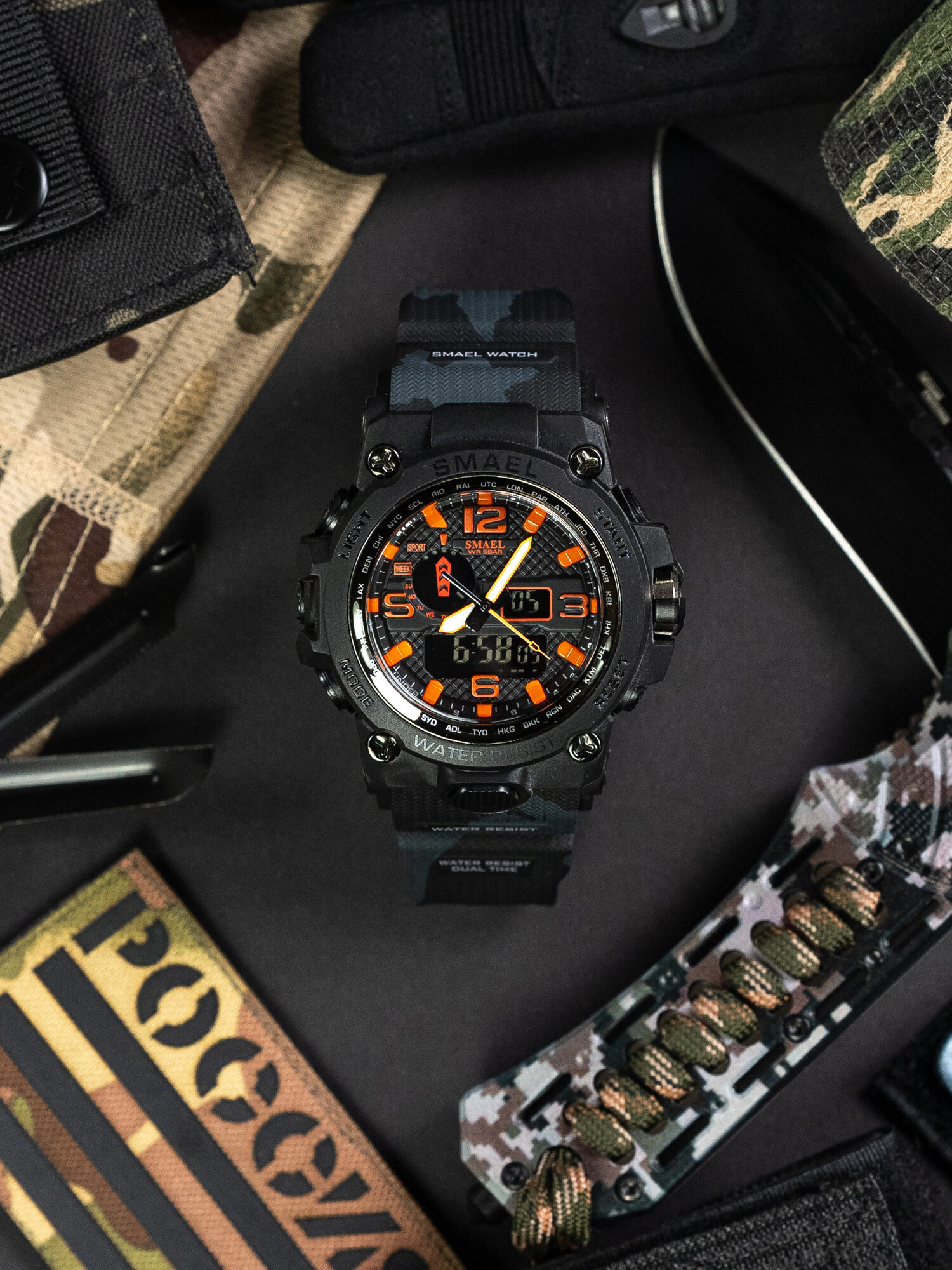 Часы мужские наручные тактические кварцевые электронные SMAEL SM1545 спортивные и водонепроницаемые, хаки