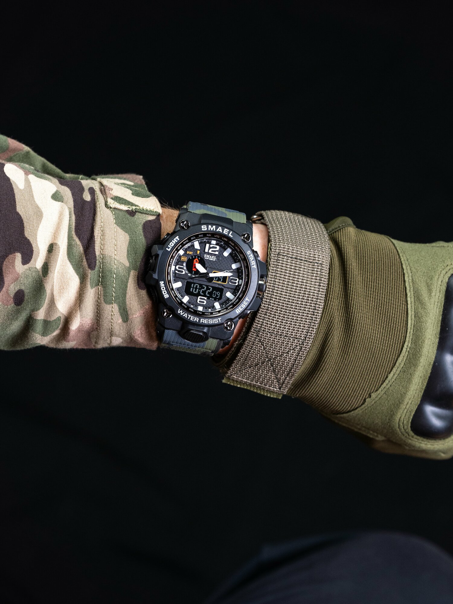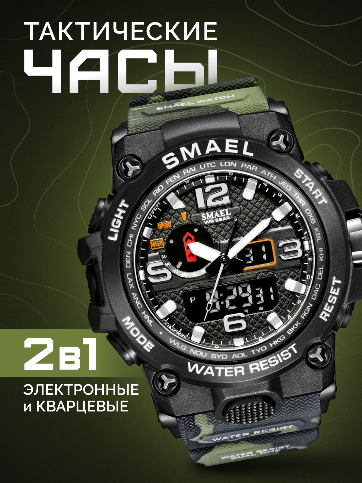 Часы мужские наручные тактические кварцевые электронные SMAEL SM1545 спортивные и водонепроницаемые, хаки
