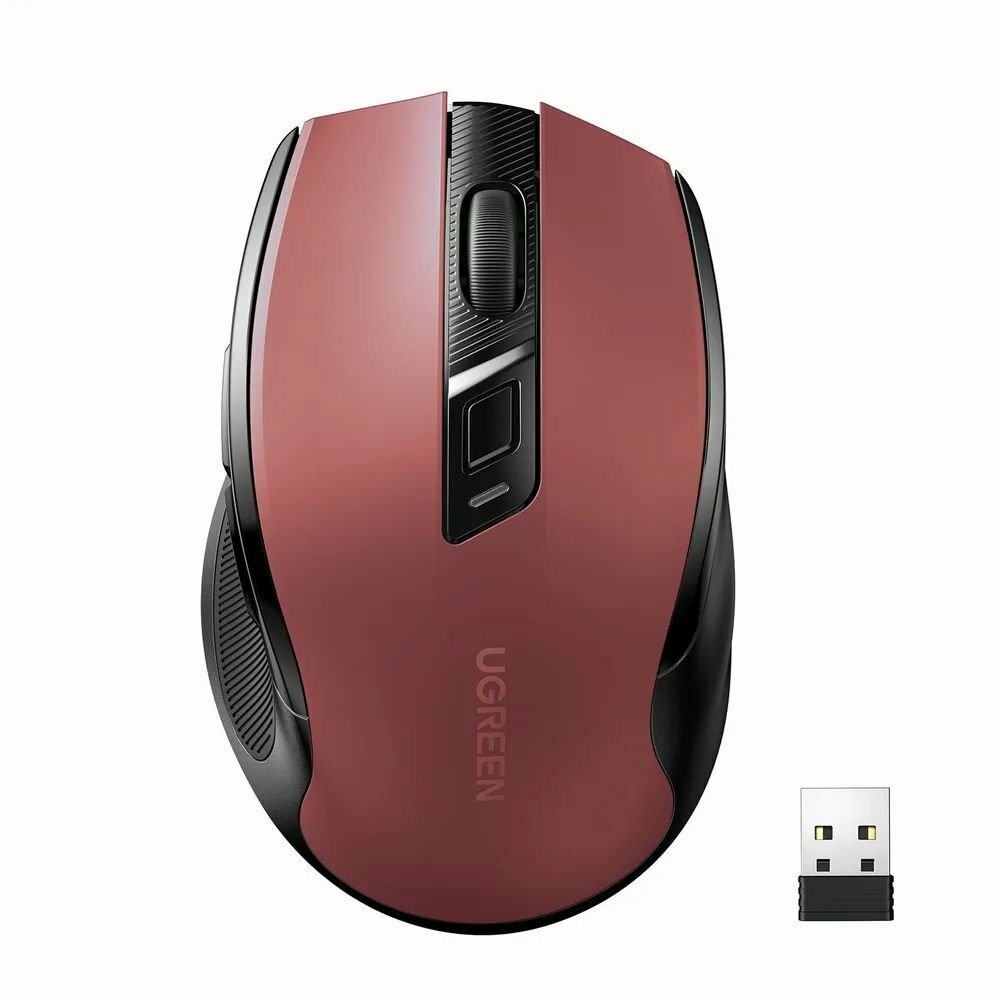 Беспроводная компьютерная мышь UGREEN MU006 (25752_) Ergonomic Wireless Mouse 2.4G 4000DPI Silence Design 2.4 GHz&BT. Цвет: красный.