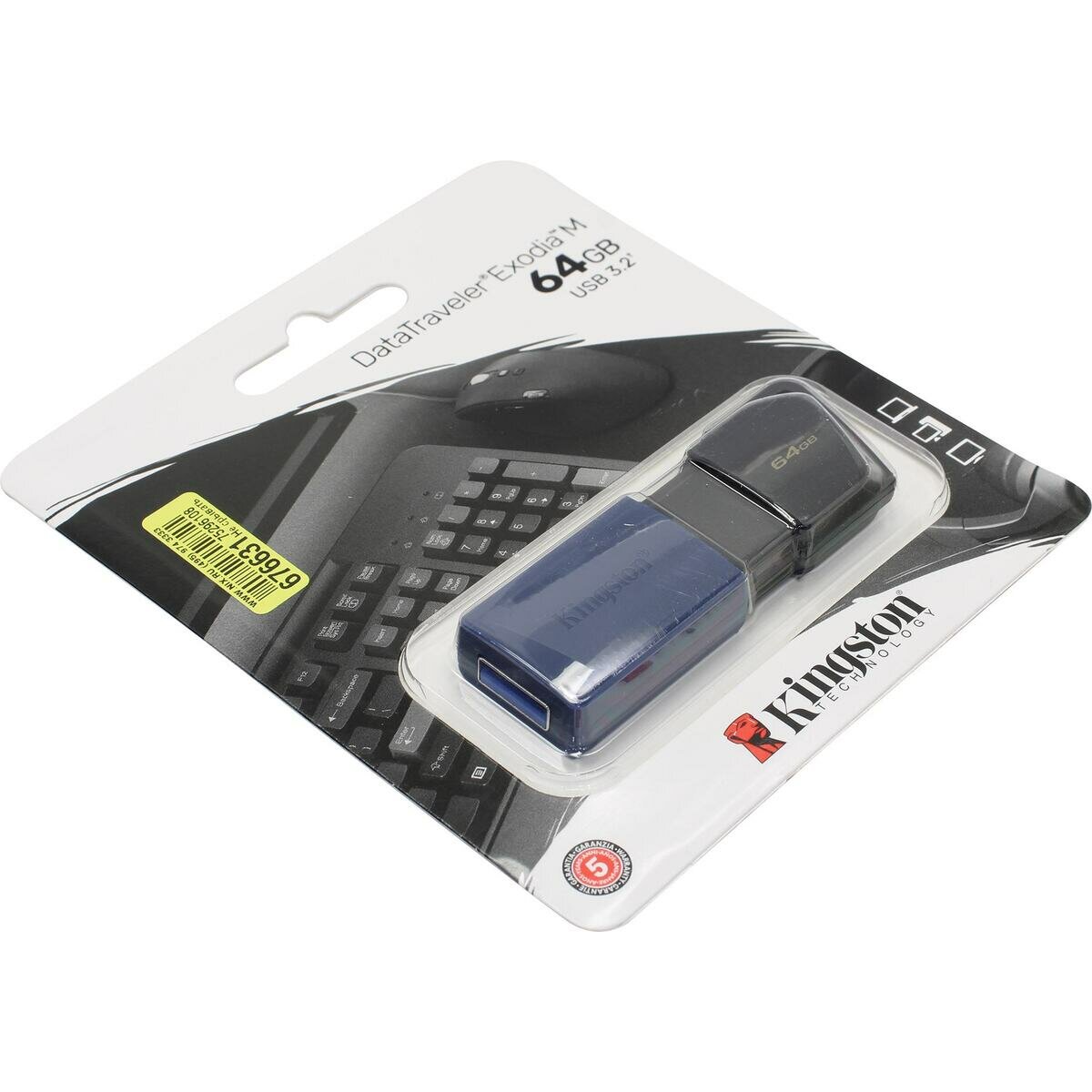 Флеш-диск 64 GB KINGSTON DataTraveler Exodia M, разъем USB 3.2, черный/синий, DTXM/64GB
