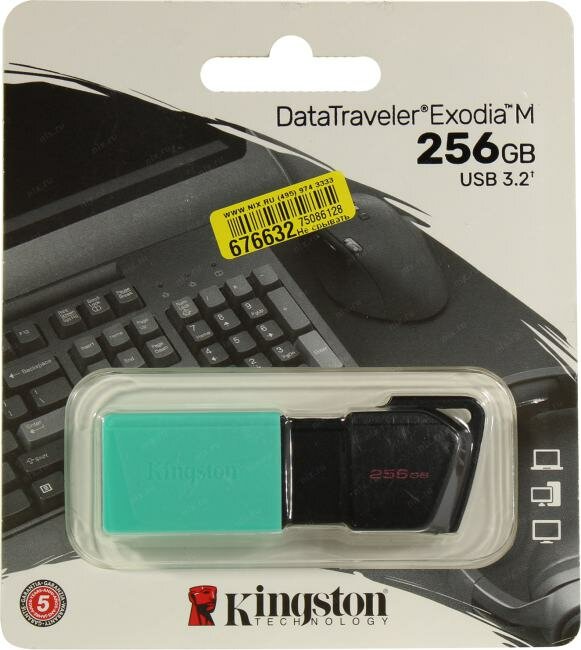 Флеш-диск 256GB KINGSTON DataTraveler Exodia M, разъем USB 3.2, черный/зеленый, DTXM/256GB, DTXM/254GB