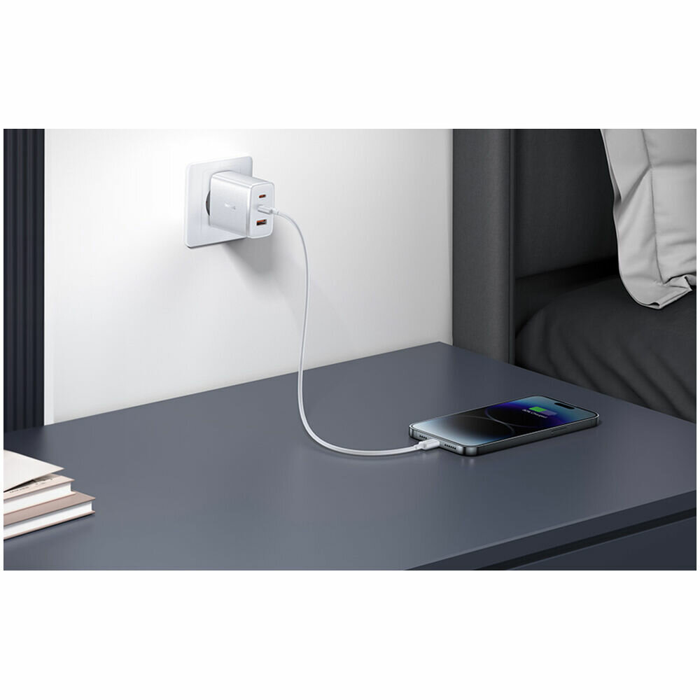 Зарядное устройство Baseus GaN5 Pro Fast Charger / 3 порта: 1xUSB + 2xUSB-C / 65W / с кабелем Type-C / Белый (CCGP120202)