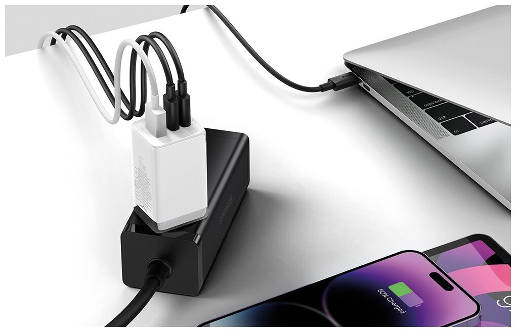 Мощное зарядное устройство U + (2х)C, Baseus Fast Charger, 65W, GaN 5 Pro, черное