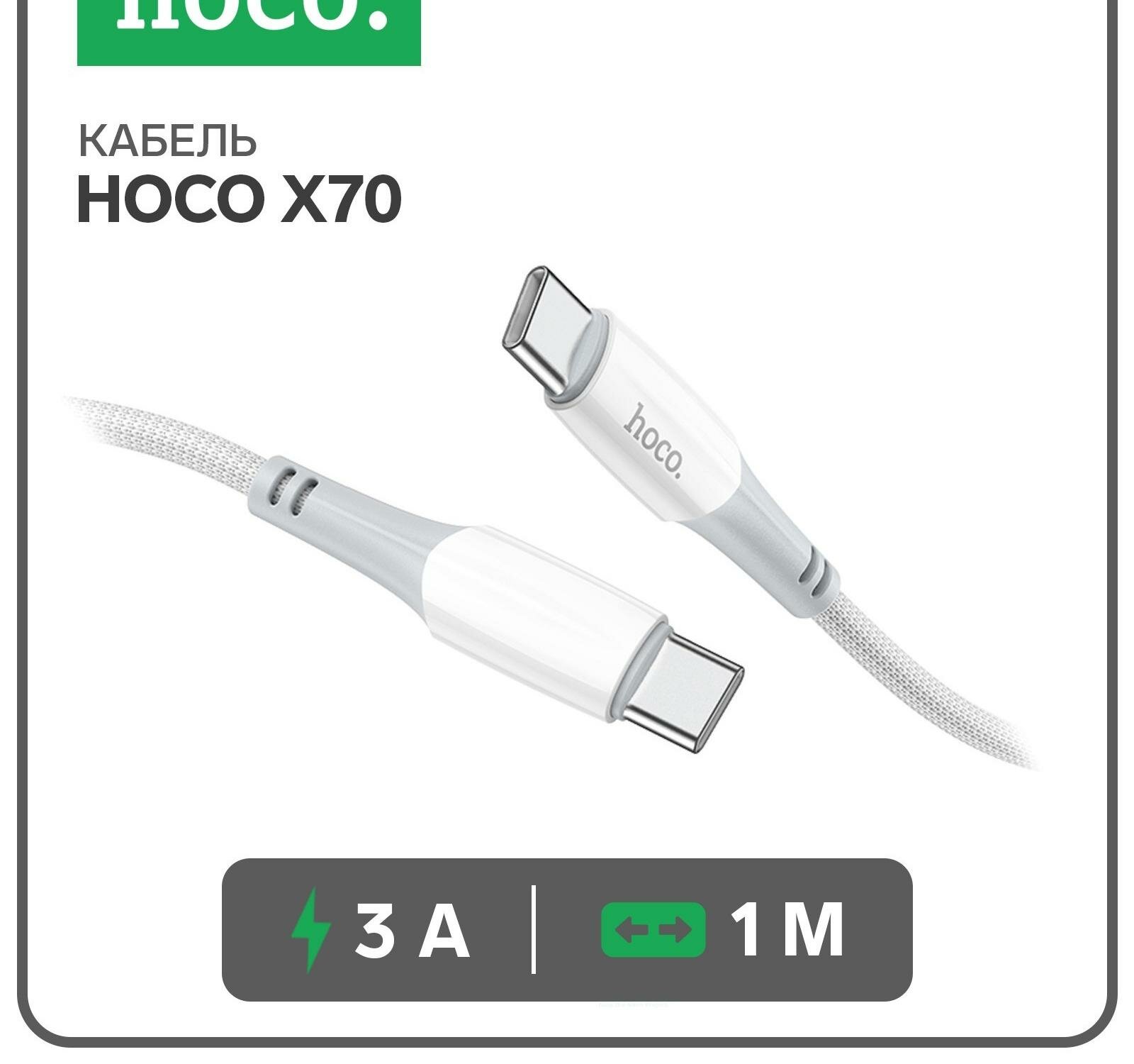 Кабель Hoco X70, Type-C - Type-C, 60 Вт (зарядка ноутбука), 3 А, 1 м, нейлон оплетка, белый