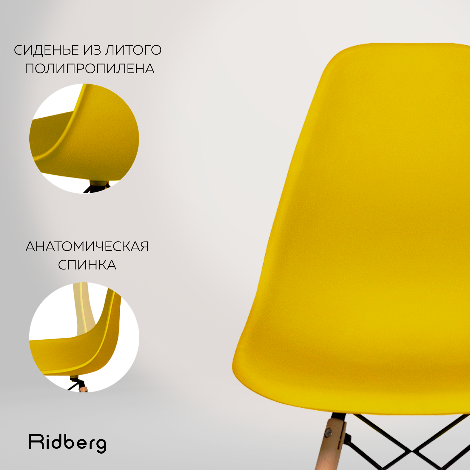 Стул RIDBERG DSW EAMES, желтый / Кухонный стул со спинкой для гостиной, столовой