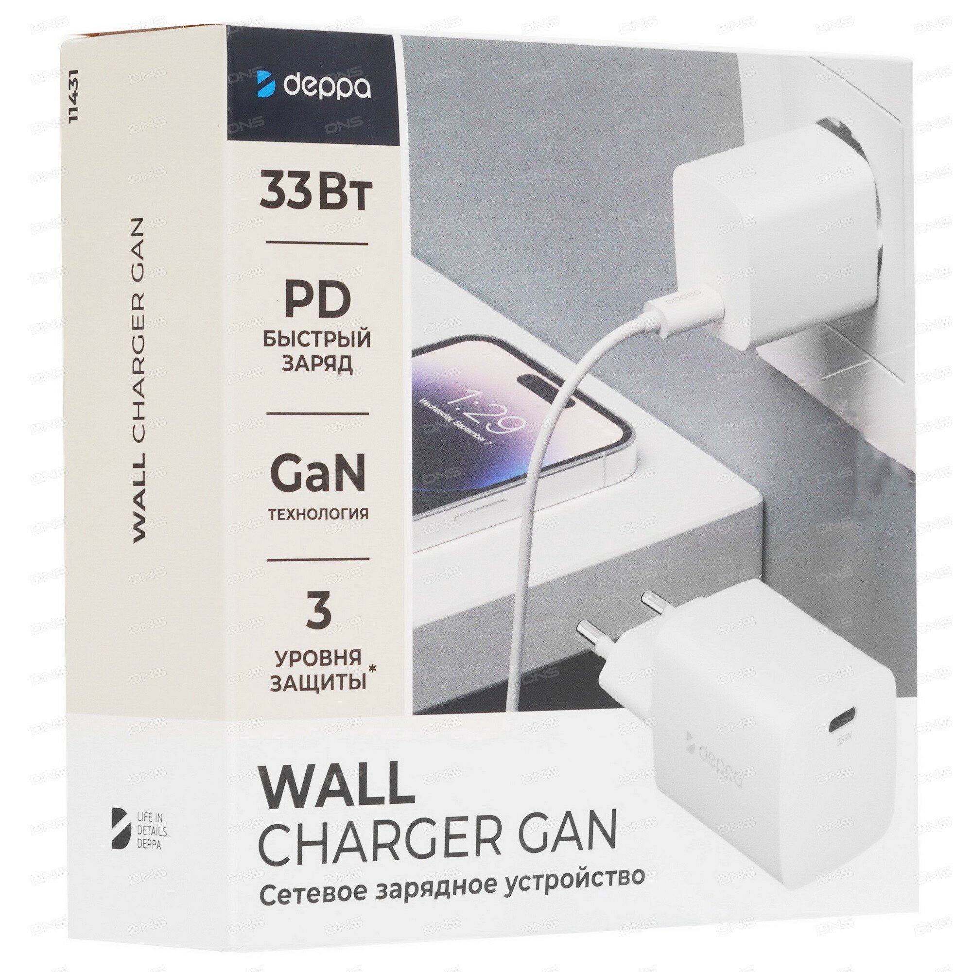 СЗУ Deppa USB-C, Power Delivery, GaN, 33Вт, белый