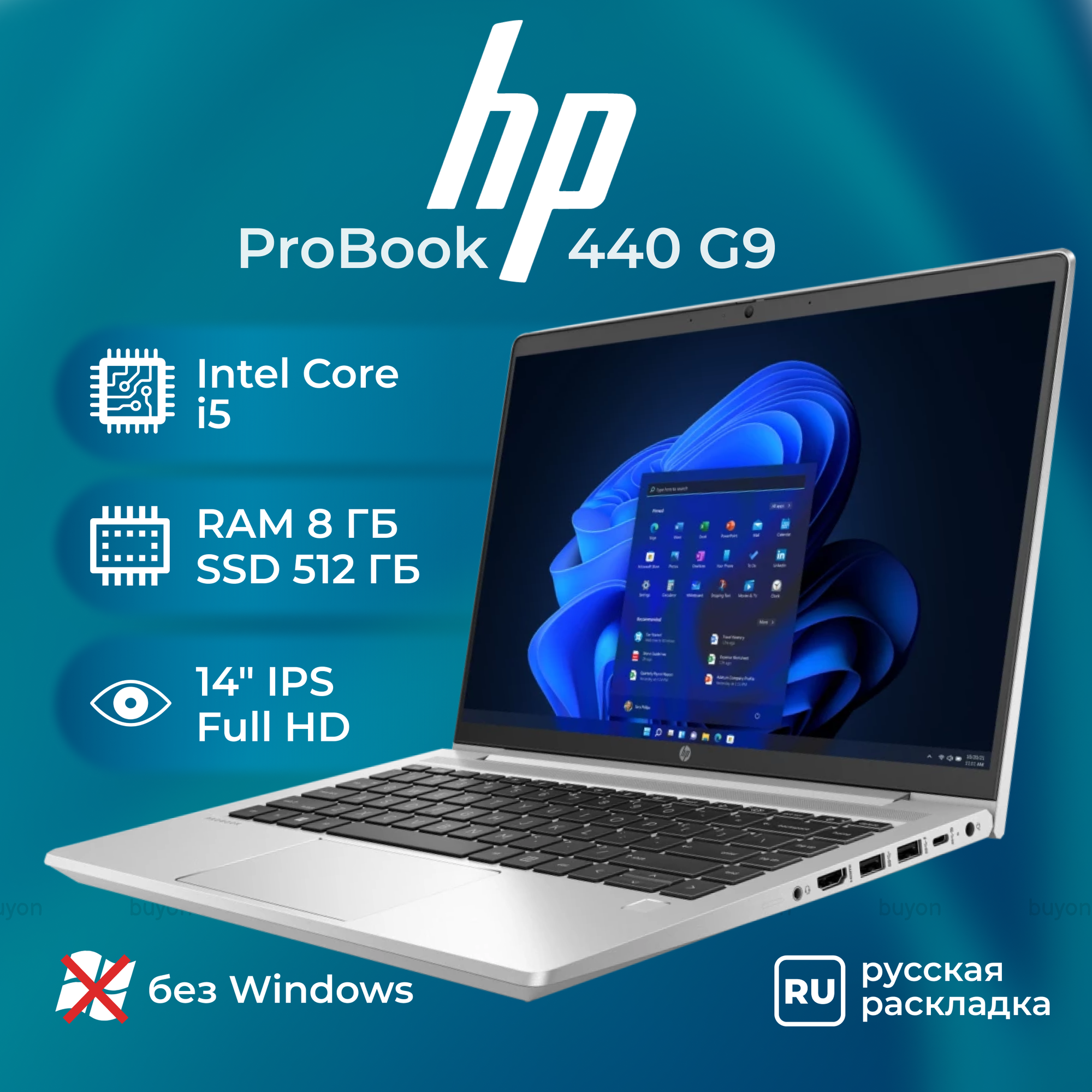 Купить Ноутбук HP ProBook 440 G9 / 14" FHD IPS / Intel Core i5-1235U / 8+512 ГБ / без ОС, русская гравировка (A05QKAT)