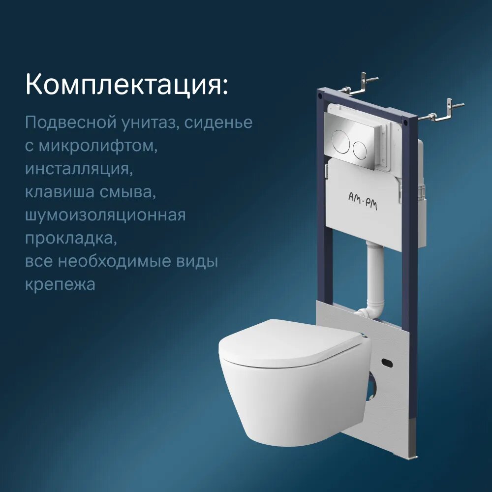 СохранитьИнсталляция с подвесным унитазом AM.PM Sense, с сиденьем микролифт, клавиша глянцевый хром интересное: