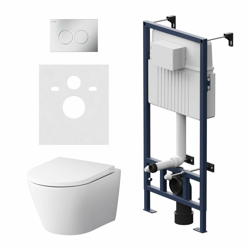Комплект унитаза с инсталляцией AM.PM Sense FlashClean IS90151.741701 с сиденьем Микролифт и клавишей смыва Хром глянцевый