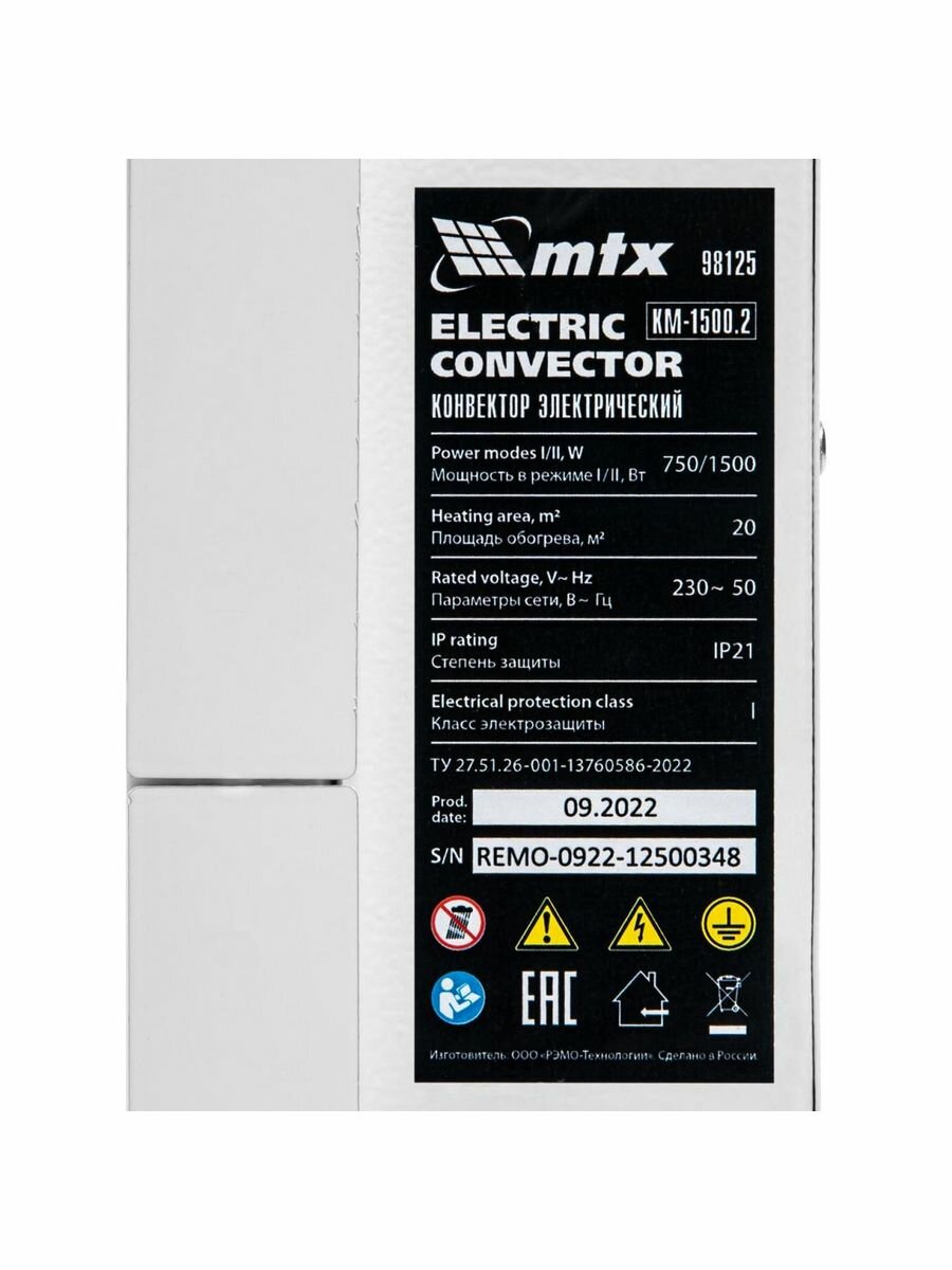 Конвектор MTX КМ-1500.2, 230 В, 1500 Вт