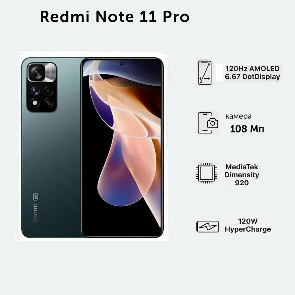 Смартфон. Redmi Note 11 pro 6/128гб, поддерживает русский язык, зелёный