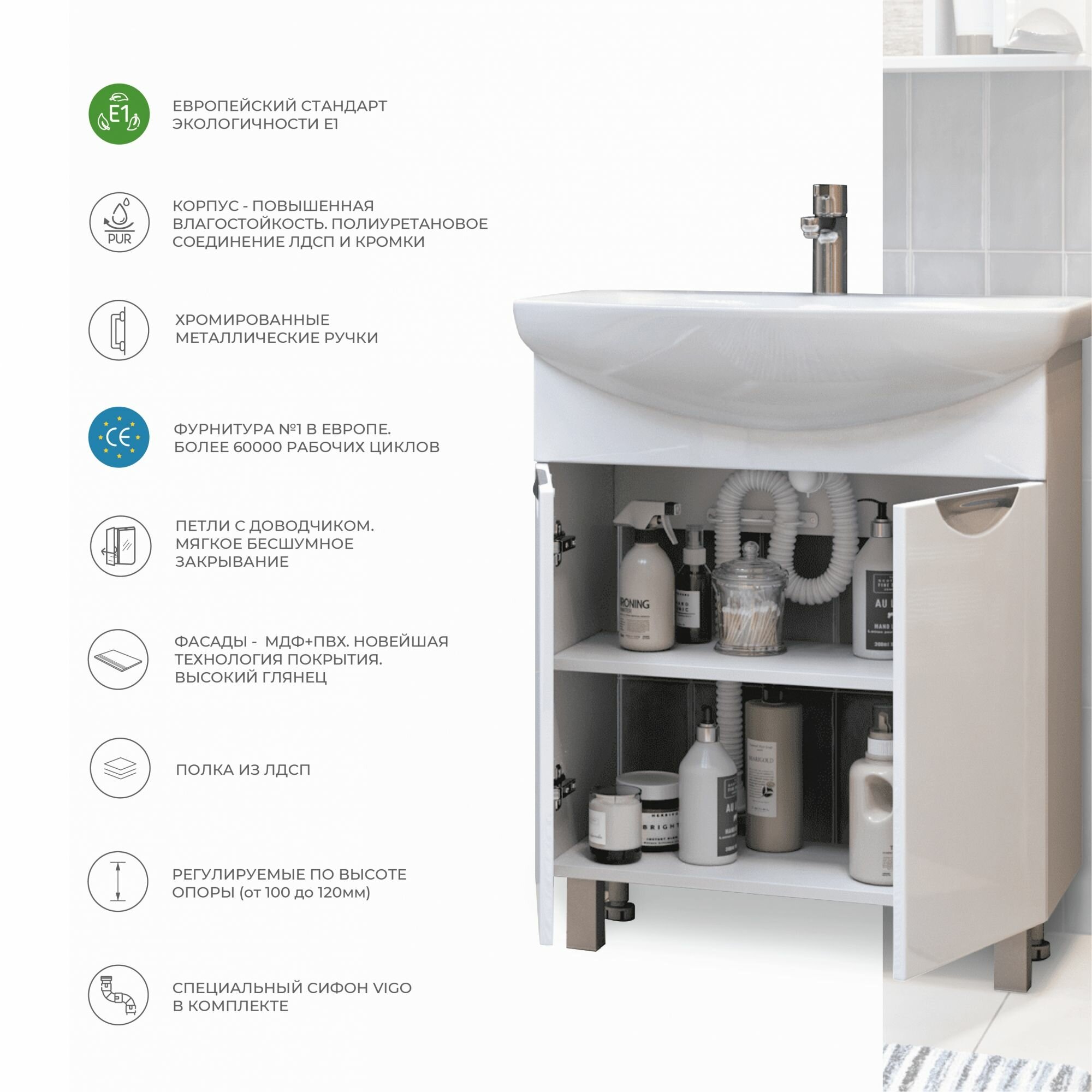 Тумба с раковиной для ванной Кристалл 50 белая.