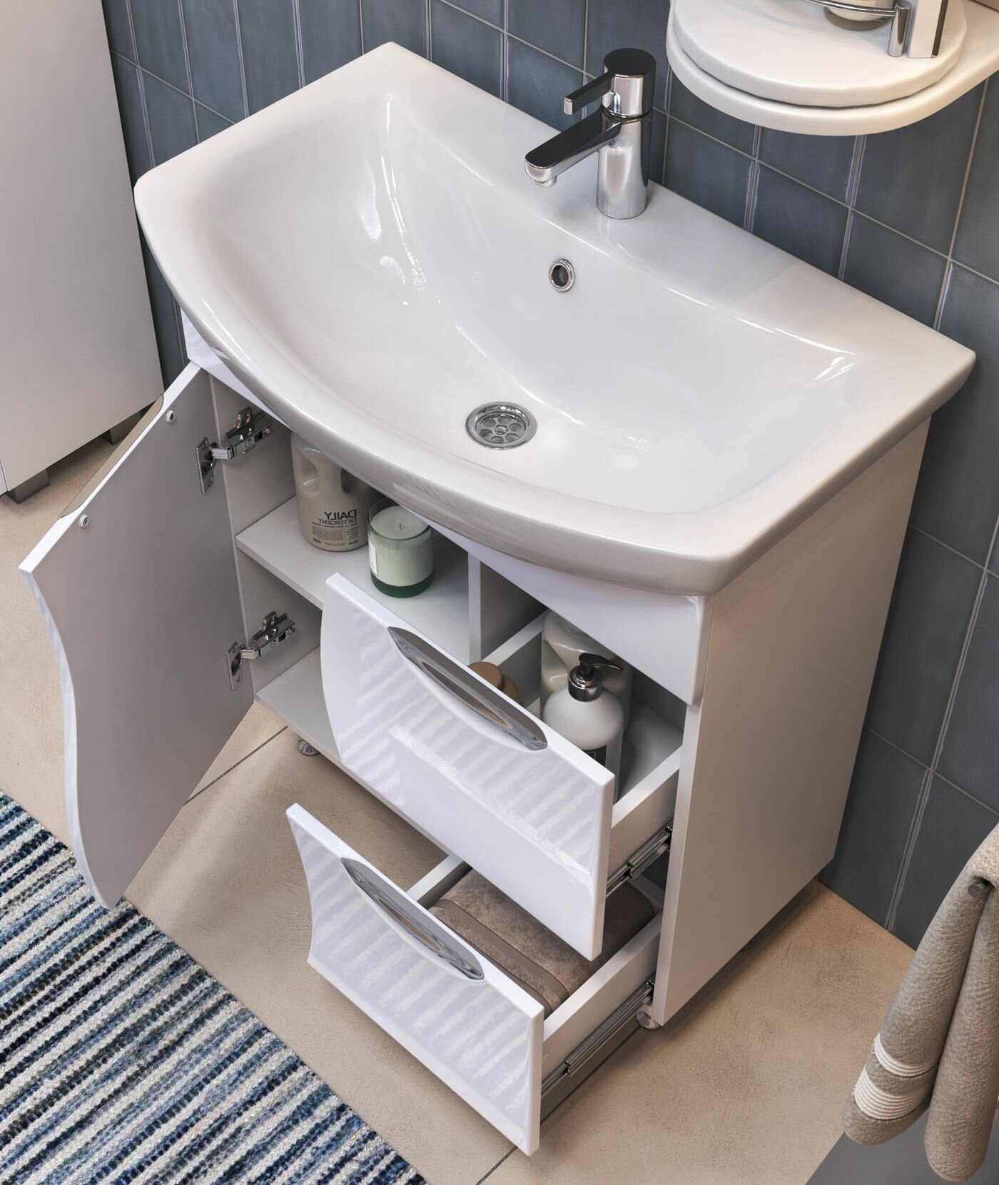 Тумба с раковиной для ванной Кристалл 50 белая.