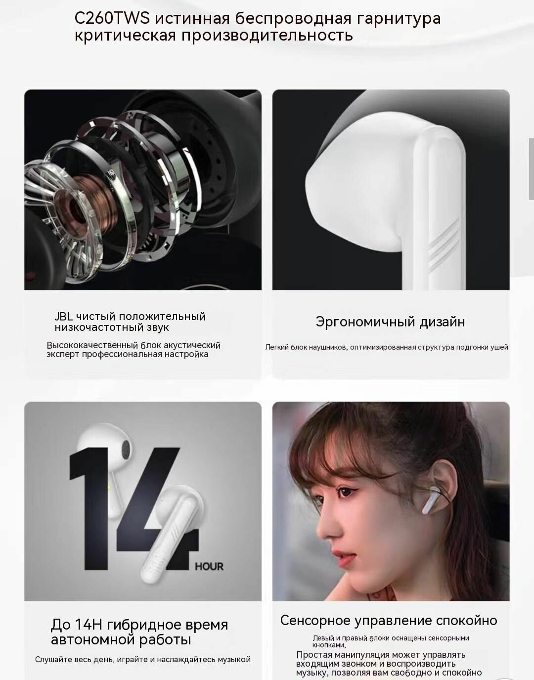 СохранитьНаушники беспроводные JBL C260TWS, Наушники-вкладыши, Bluetooth 5.3, два микрофона с функцией шумоподавления при вызове, поддержка быстрой зарядки интересное:
