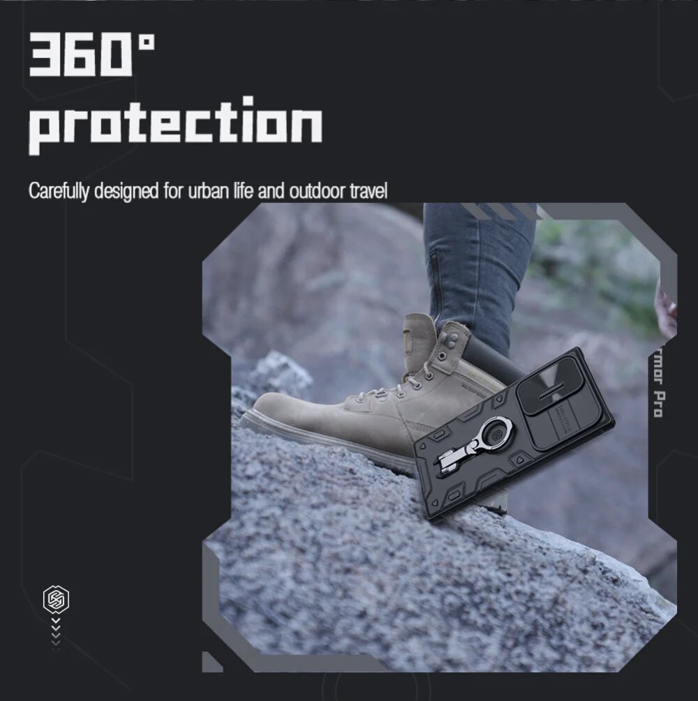 Купить Nillkin для Samsung Galaxy S23 Ultra, защитный чехол CamShield Armor Pro, гибридный защитный чехол с подставкой и крышкой для объектива камеры, Черный, Для GalaxyS23Ultra (6,8 ")