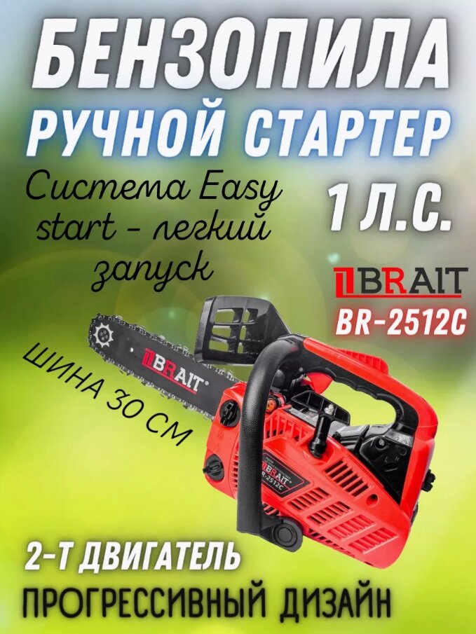 Купить Пила цепная бензиновая BRAIT BR-2512С 1 л. с, легкий запуск, шина 30 см