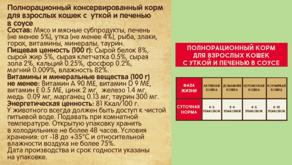 | Дозировка | нормы кормления указаны на упаковке |
