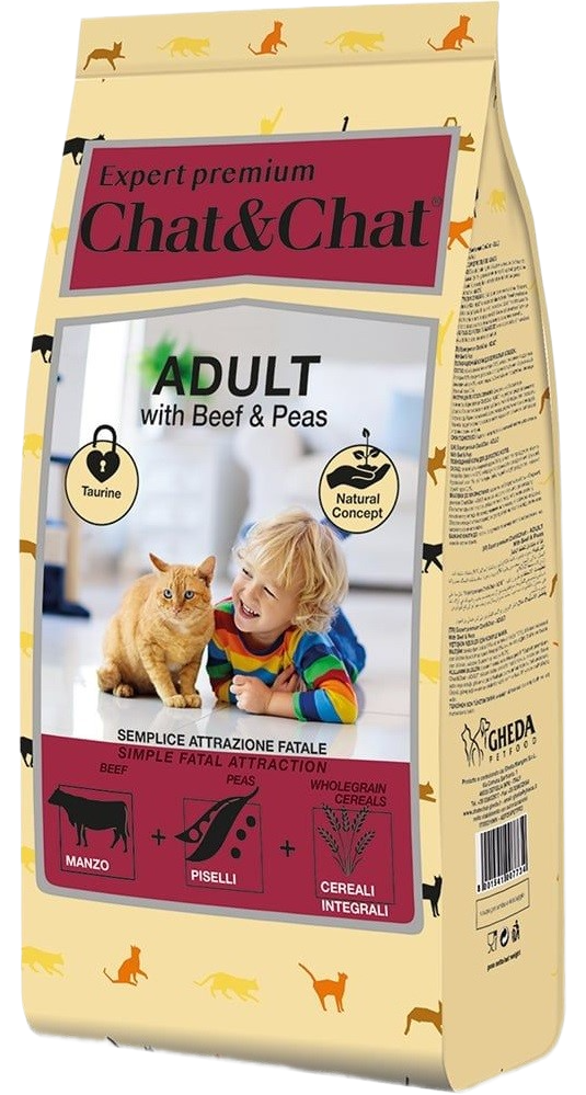 Корм Chat&Chat Expert Premium для взрослых кошек с говядиной и горохом 2 кг