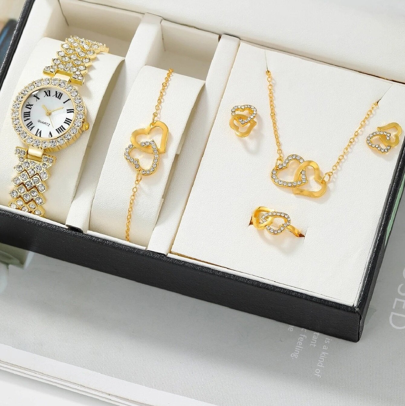 Часы женские с браслетом, цепочкой, серьгами и кольцом / часы женские кварцевые
