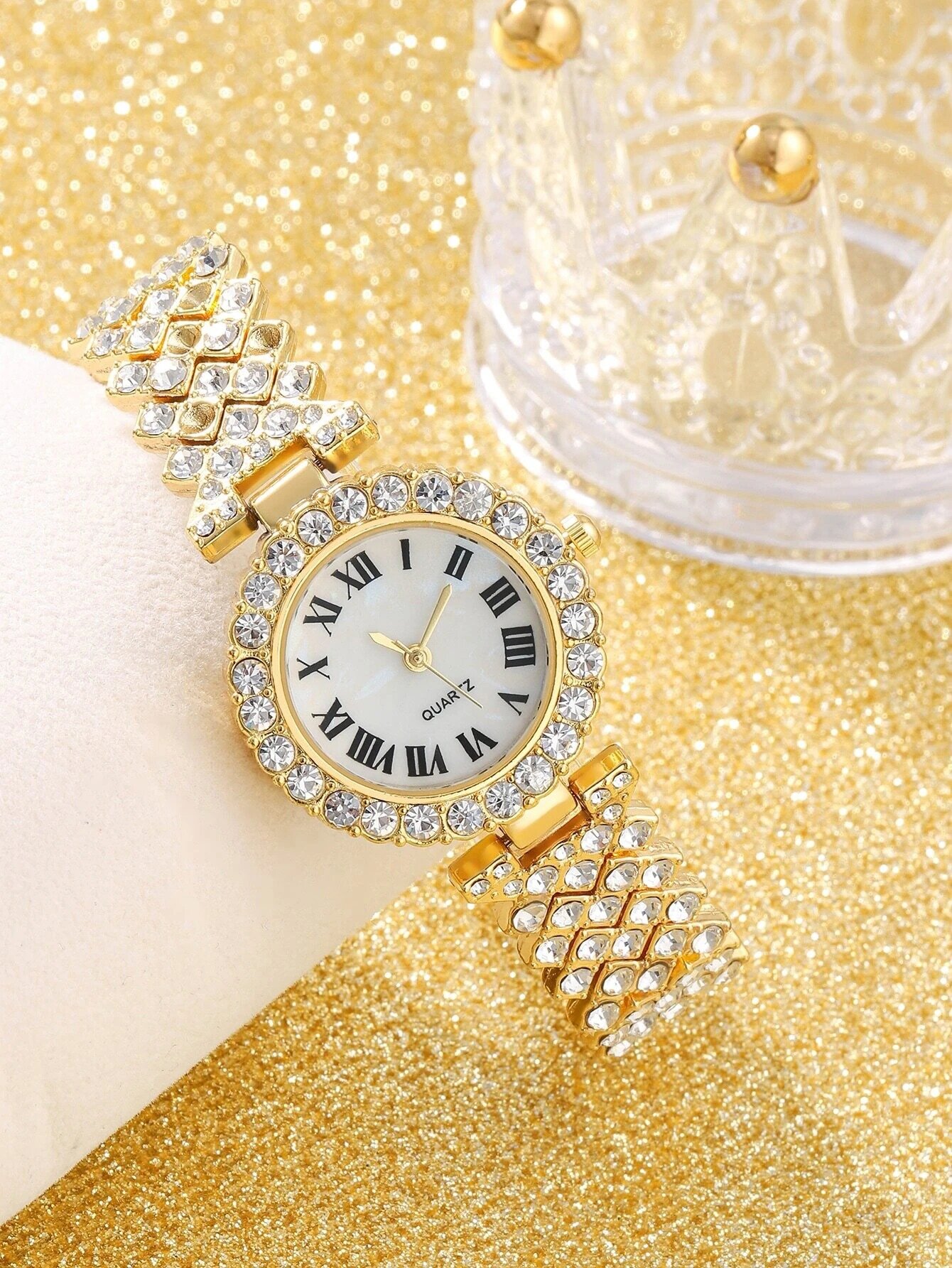 Часы женские, блестящие с браслетом
