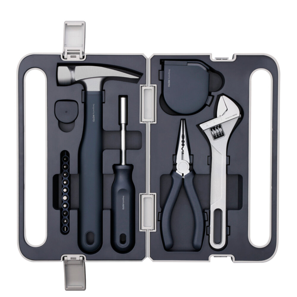 Набор инструментов HOTO Manual Tool Set QWSGJ002, отвёртка, молоток, измерительная лента 3 м, плоскогубцы, гаечный ключ, набор бит, кейс интересное: