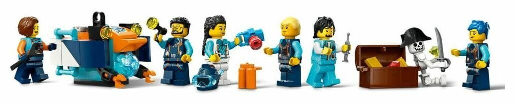 | Комплектация | 6 минифигурок исследователей, а также 1 скелет, 3 акулы, 2 медузы и 4 фигурки рыб |