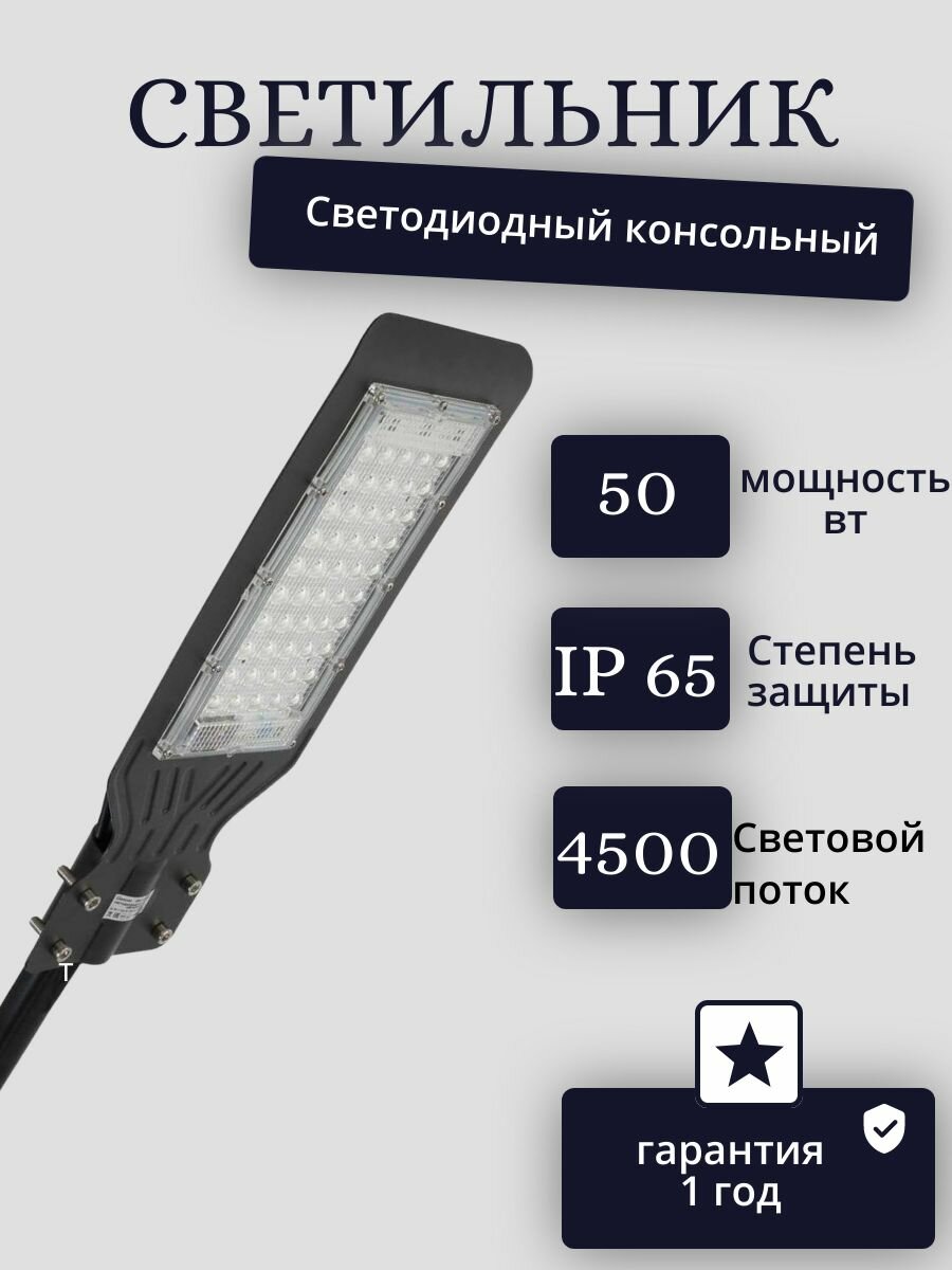 Купить Светильник консольный RPD-6500-50-k уличный, светодиодный, 50Вт, IP65, черный