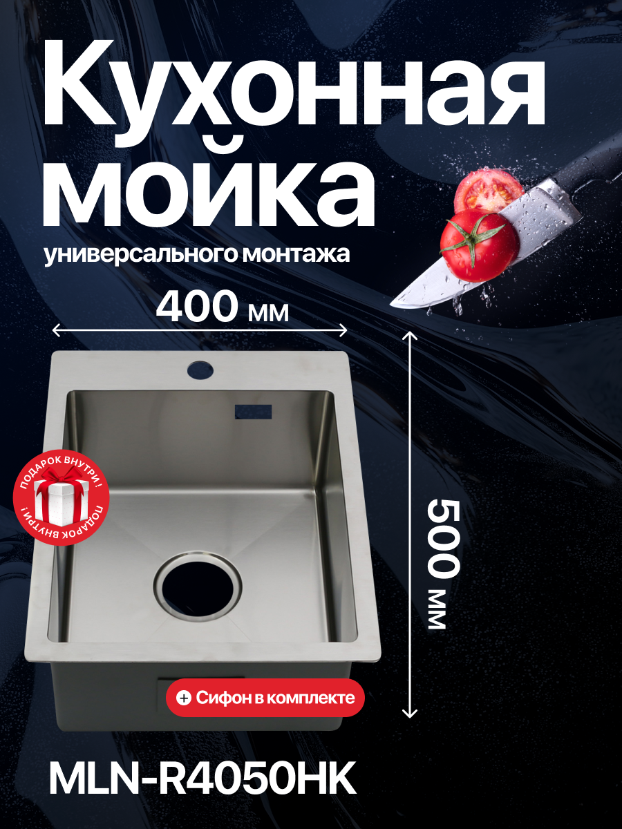 Мойка для кухни Melana ProfLine 500х400х200 мм врезная прямоугольная с сифоном сталь (R5040H)