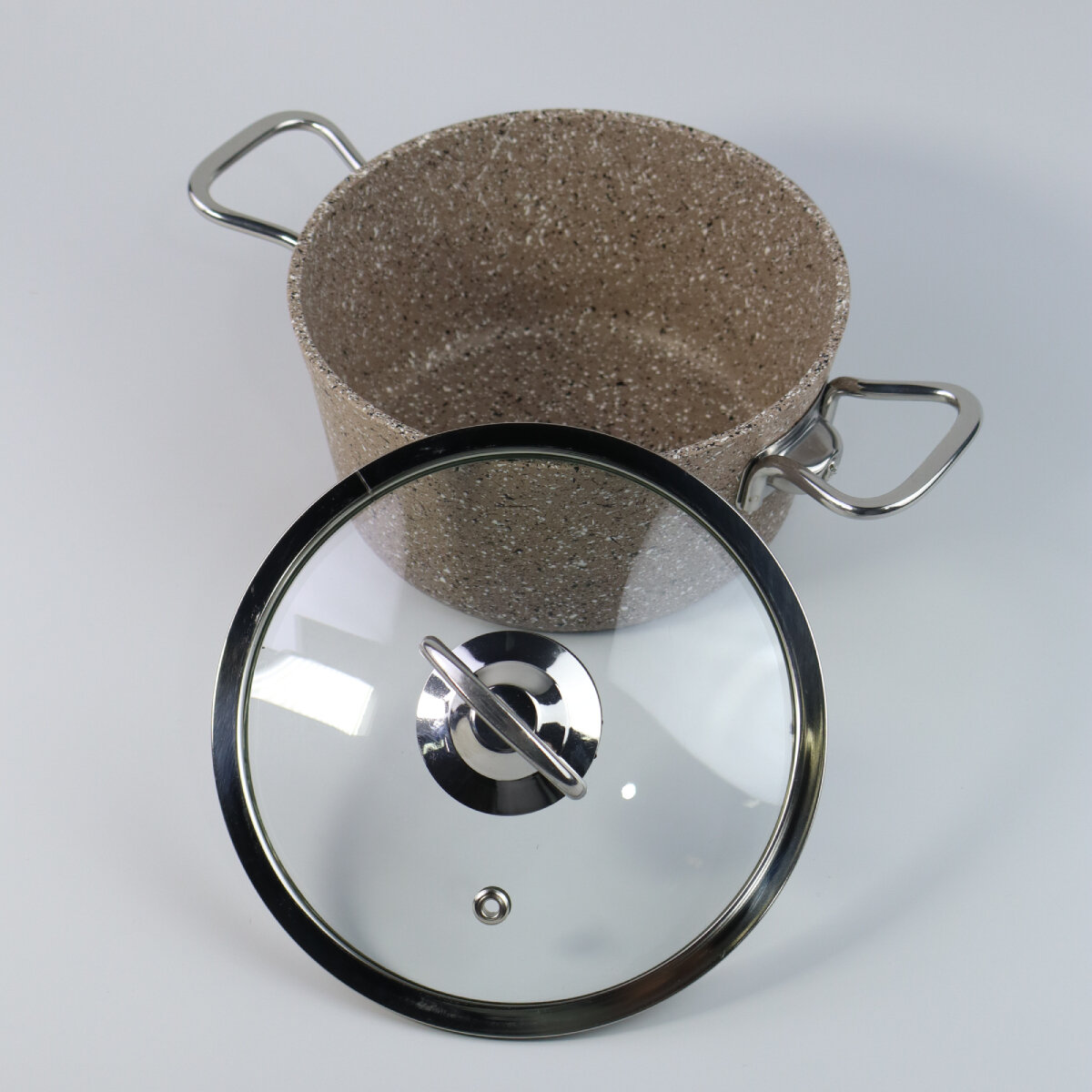 Купить Кастрюля 1,8л с крышкой 16 см. O.M.S. Collection. Антипригарное гранитное покрытие. Цвет: коричневый.