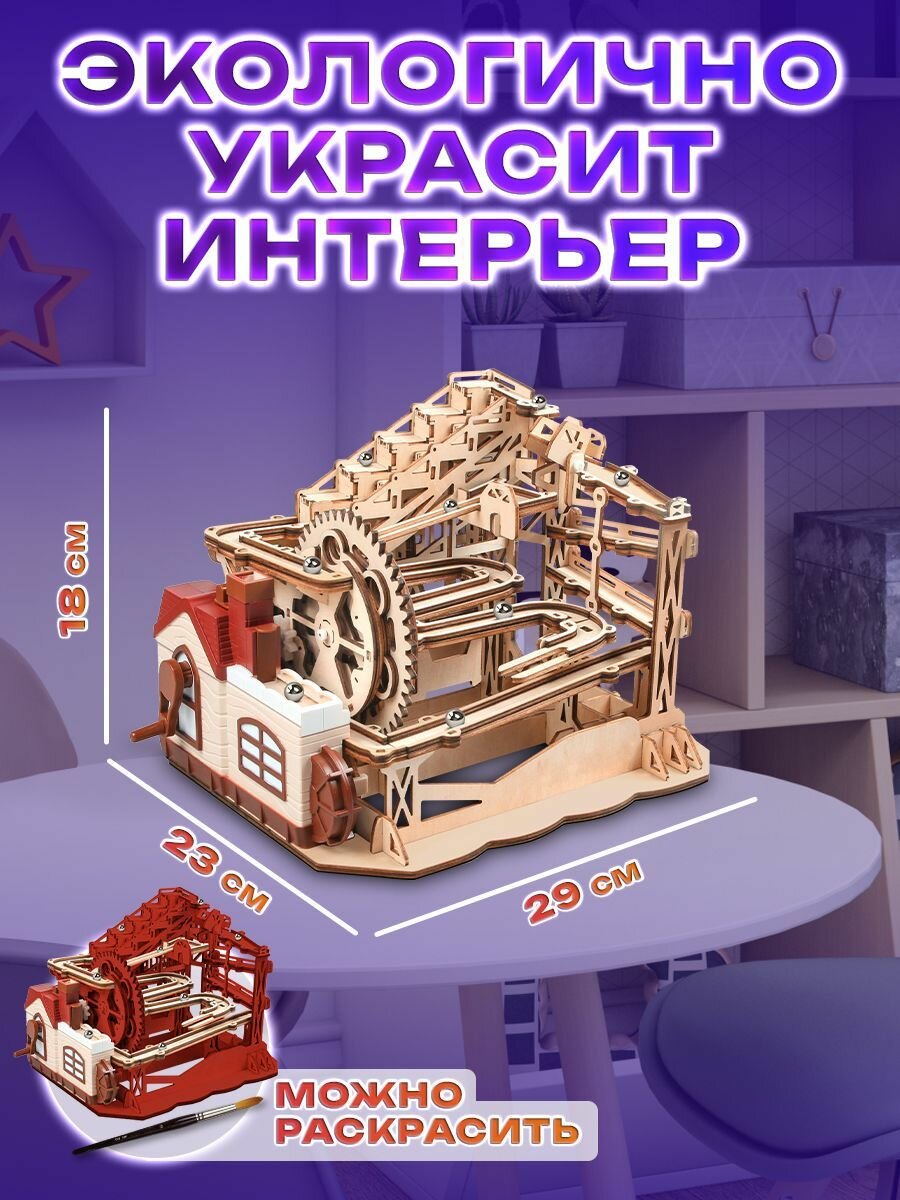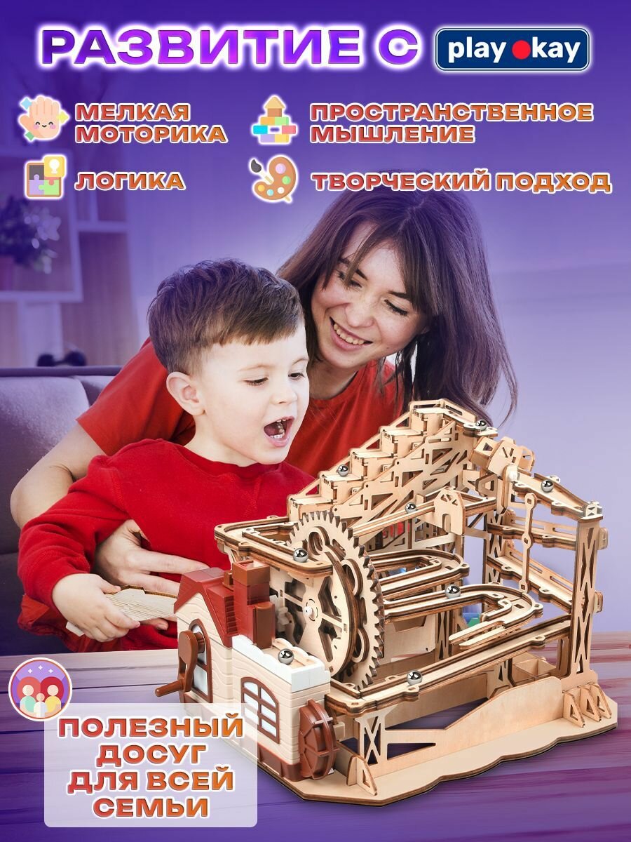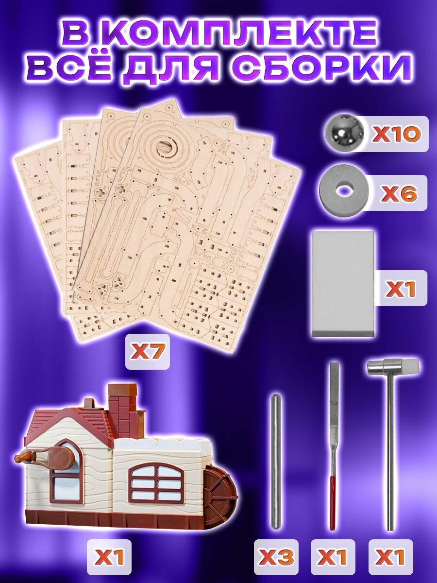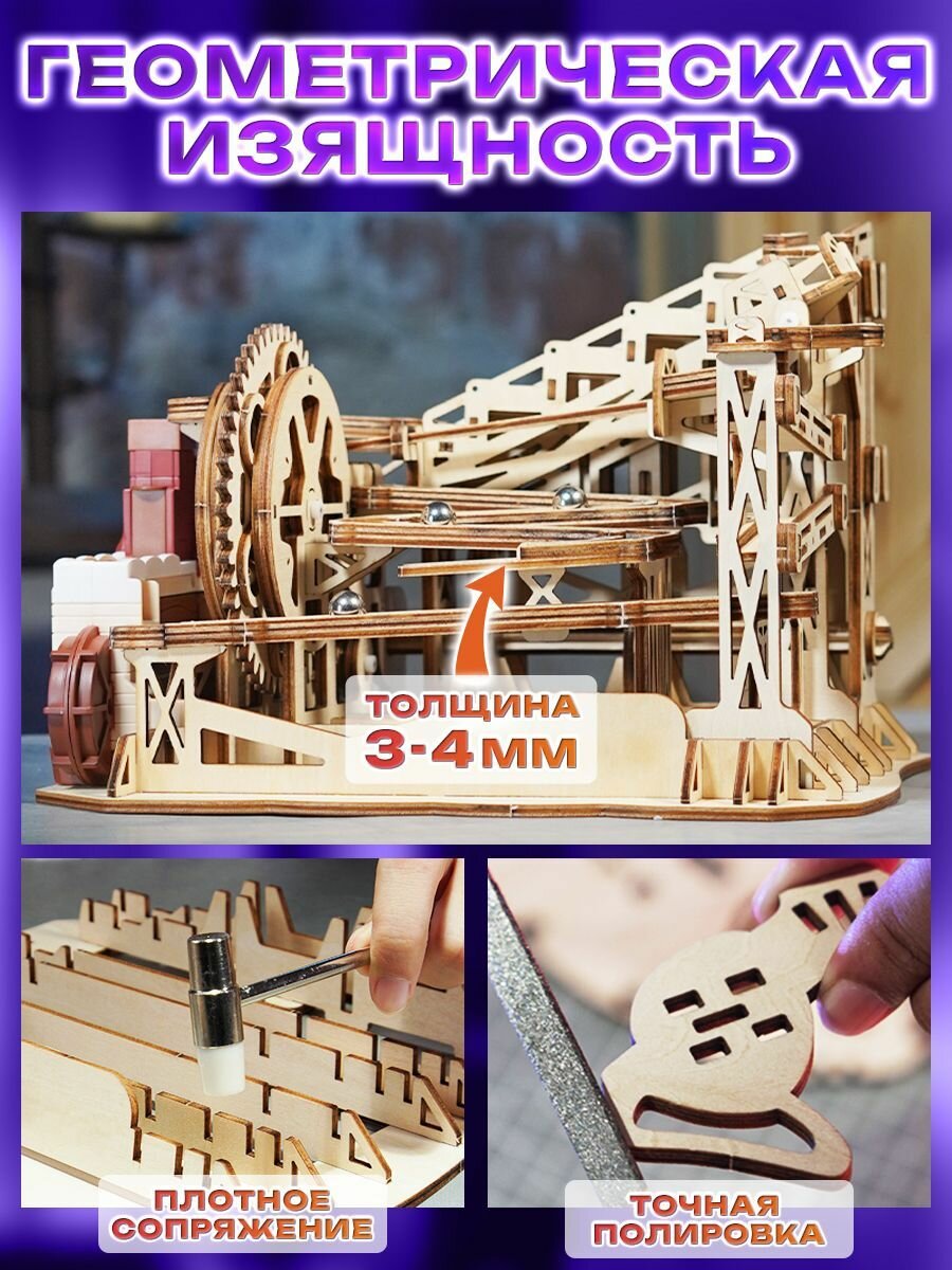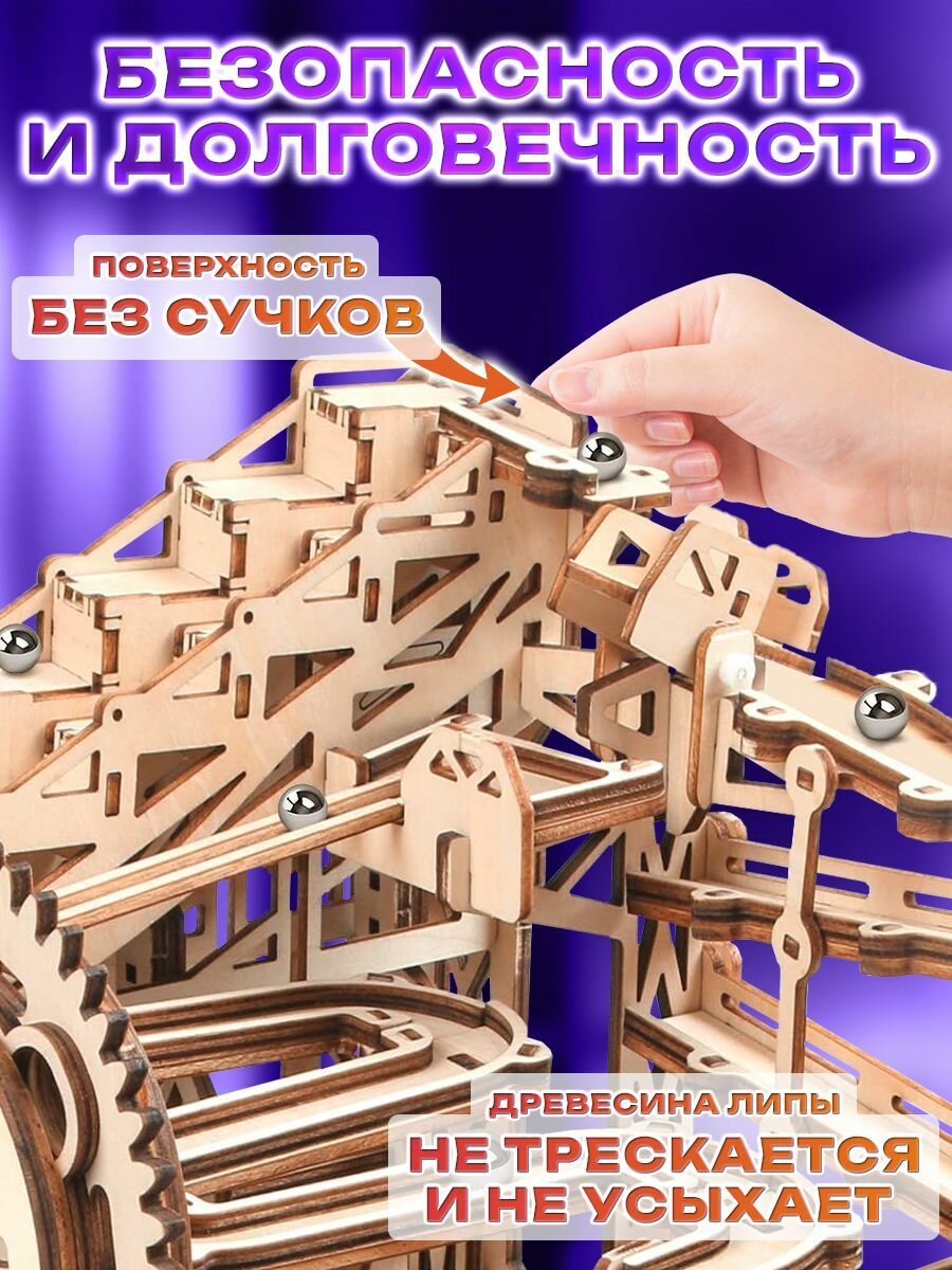 СохранитьДеревянный конструктор 3Д, сборная модель, механизм шестеренки c металлическими шариками для детей, развивающая механическая игрушка движущаяся интересное: