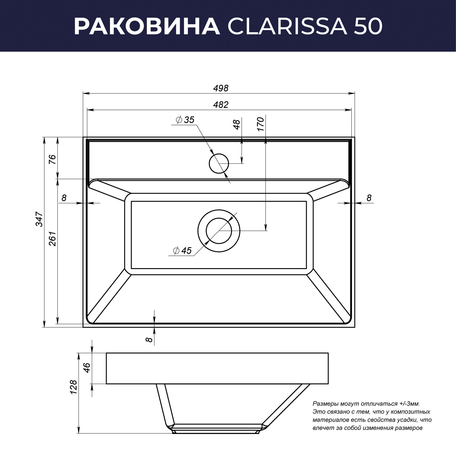 СохранитьРаковина в ванную Clarissa 50 498х347х128 интересное: