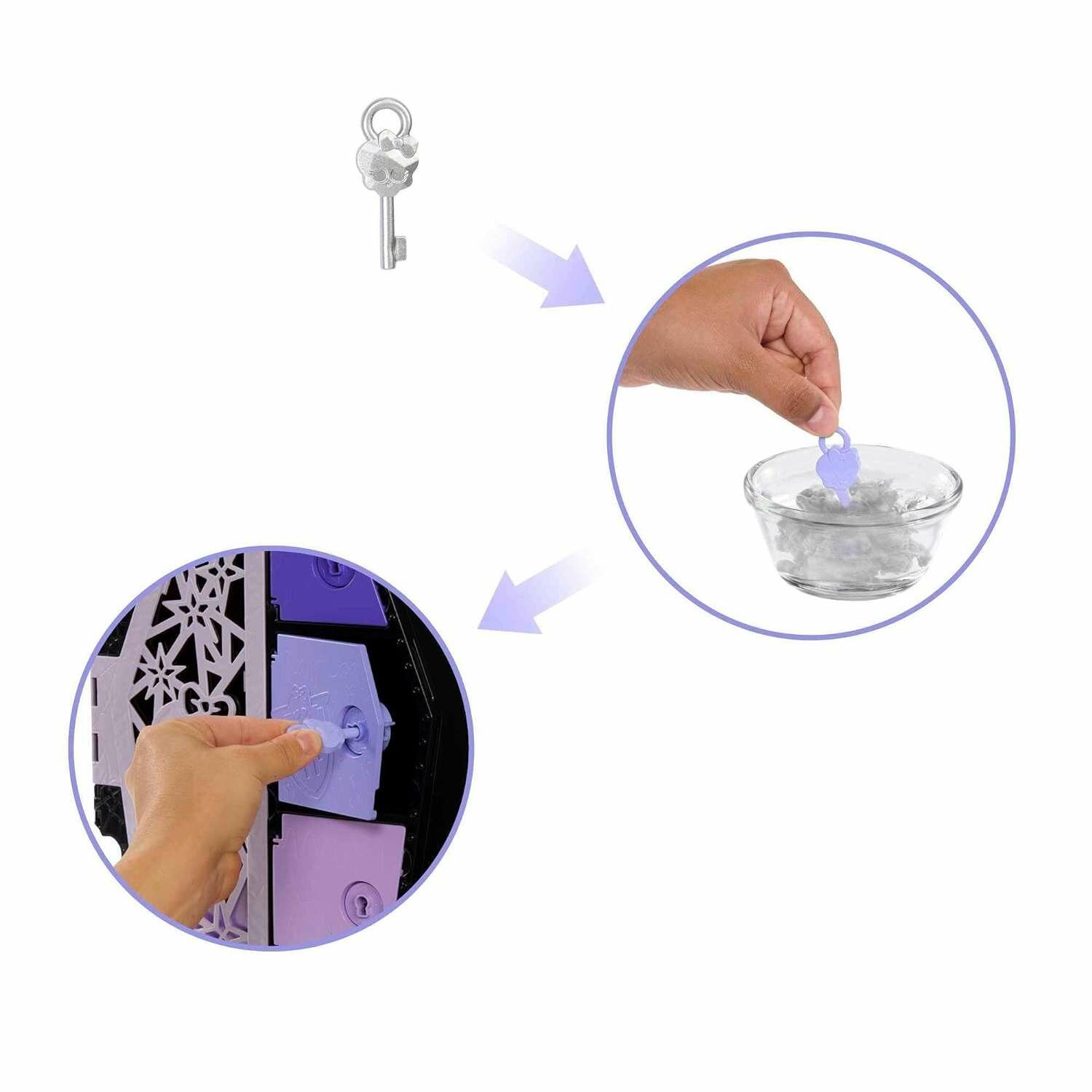 | Комплектация | Аксессуары, Аксессуары для волос, Одежда и обувь, вещи, шкаф в виде гробика |