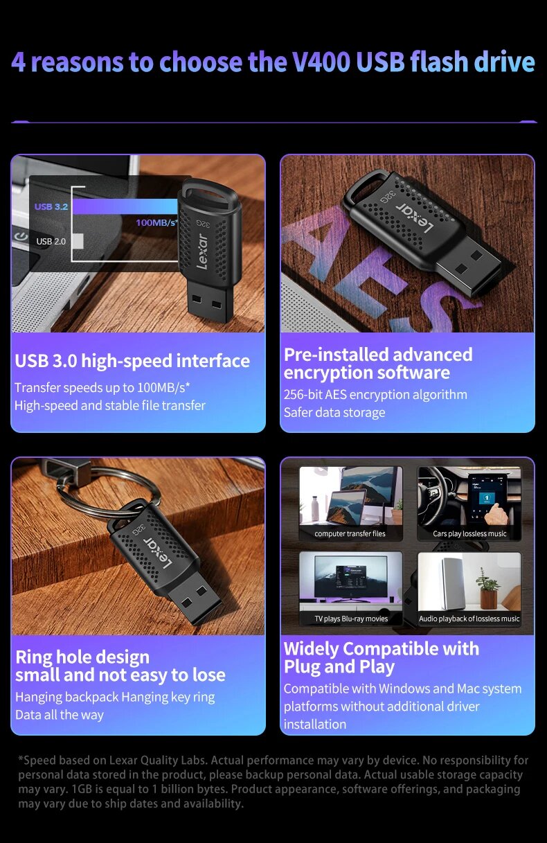 Lexar JumpDrive V400 флешка 32/64/128 ГБ, 64 ГБ интересное: