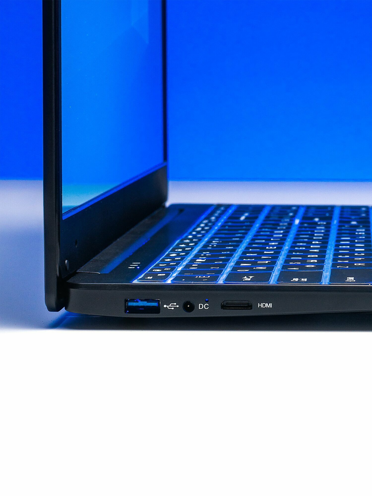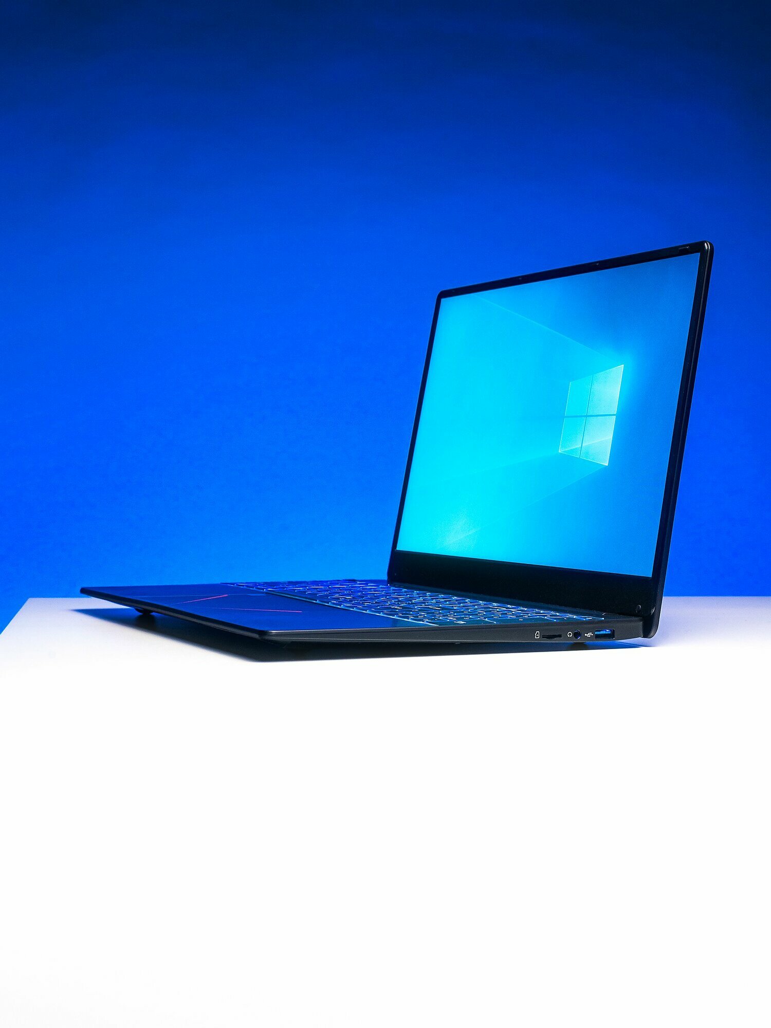 шустрый, средний по шуму, полностью русифицирован, неплох экран, хорошая упаковка, большой тач, отпечаток работает и настраивается без проблем, легкий, тонкий, разные цвета подсветки, силиконовая накладка на клавиатуре уже на месте - еще и спасает от грязи.