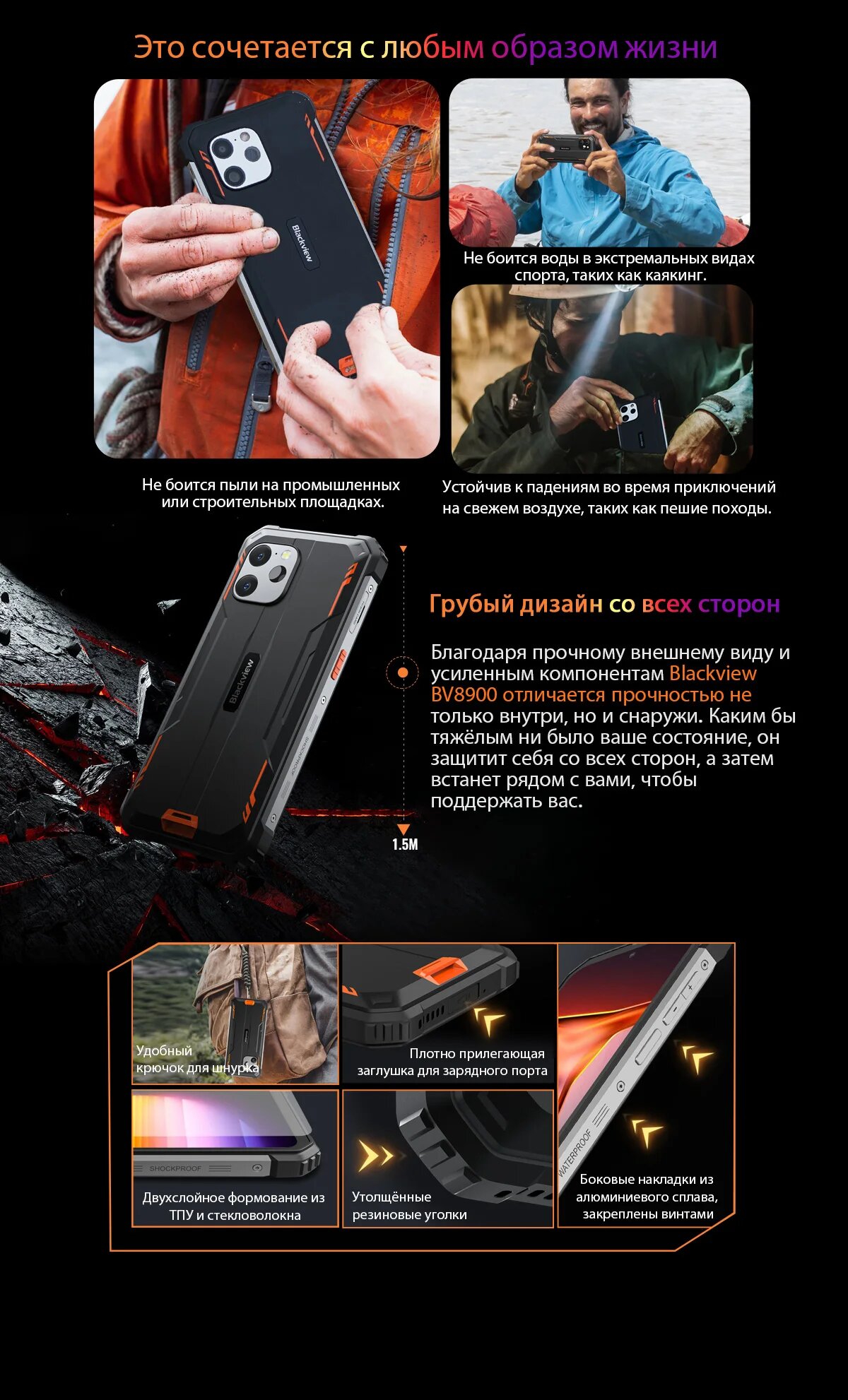 Blackview BV8900 Rugged Machine, на базе Android 13, экран 6,5 дюйма 2,4 K, 16 Гб (8 + 8) 256 ГБ, Add TWS Airbuds 6, Blackview, BV8900, Глобальная версия, Смартфон, Черный, 16ГБ, 256ГБ, global, новый, 01.04.2023