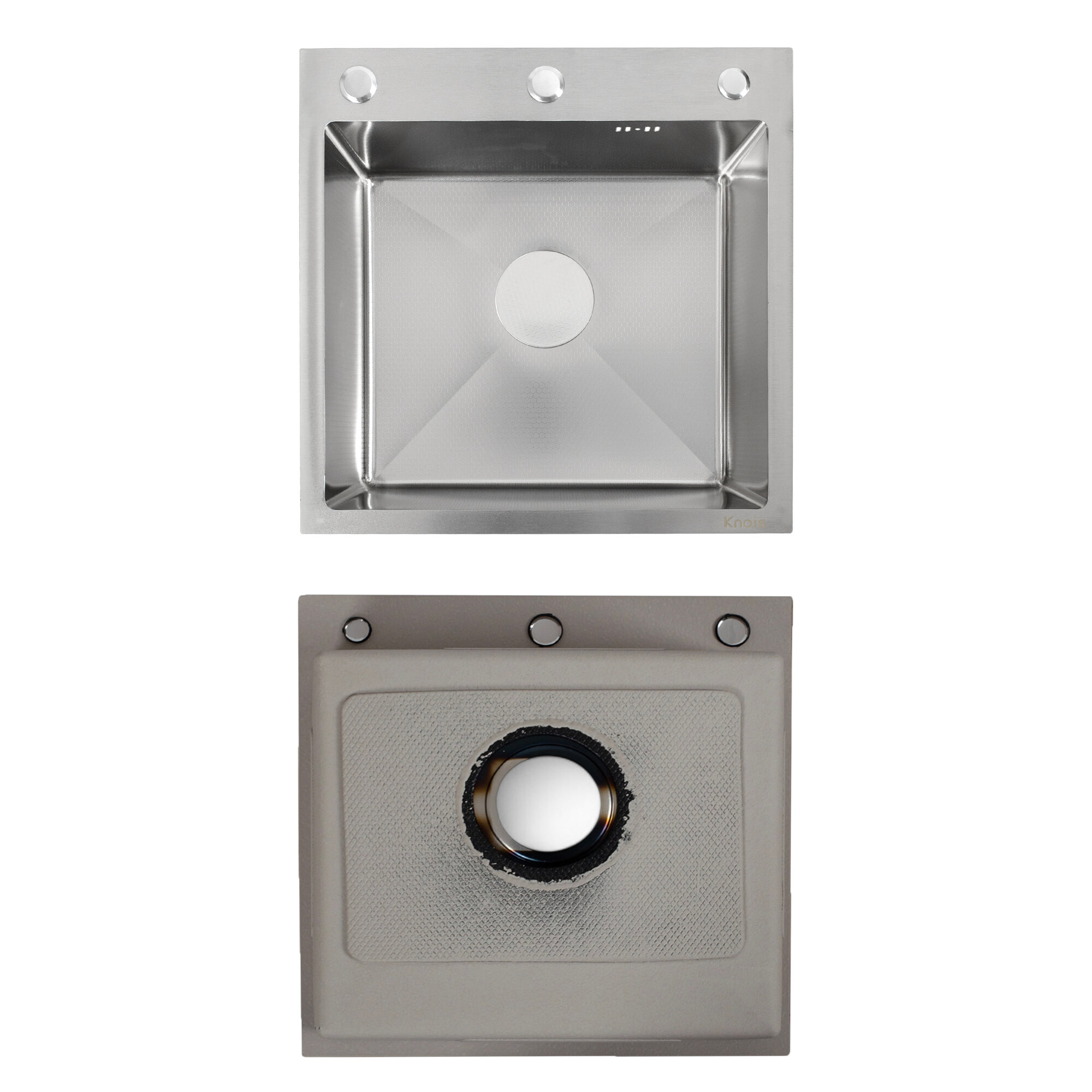 Купить Мойка врезная 50х50 см, толщина 3,0 х 0,8 мм, глубина 220 мм + большой сифон с переливом
