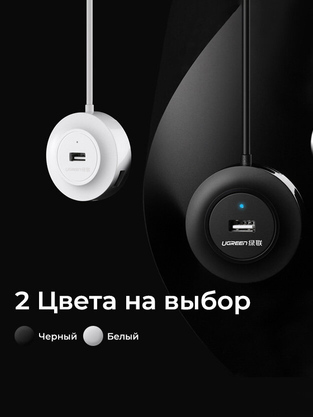 Хаб UGREEN CR106 (20277) USB 2.0 Hub 4 Ports. Длина 1 м. Цвет: черный