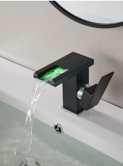 СохранитьСмеситель для раковины с каскадным изливом и подсветкой Bono Mini Black черный, кран для ванной из нержавеющей стали интересное: