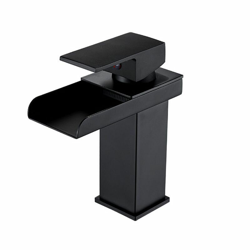 СохранитьСмеситель для раковины из нержавеющей стали с каскадным изливом Netto Black матовый черный, кран для ванной интересное: