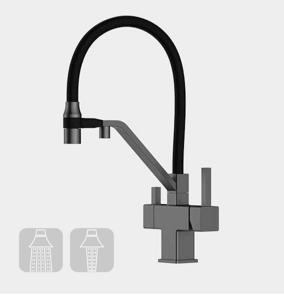 Смеситель для кухонной мойки Gappo G95-66 G4395-66 с подключением фильтра питьевой воды и гибким изливом, черный