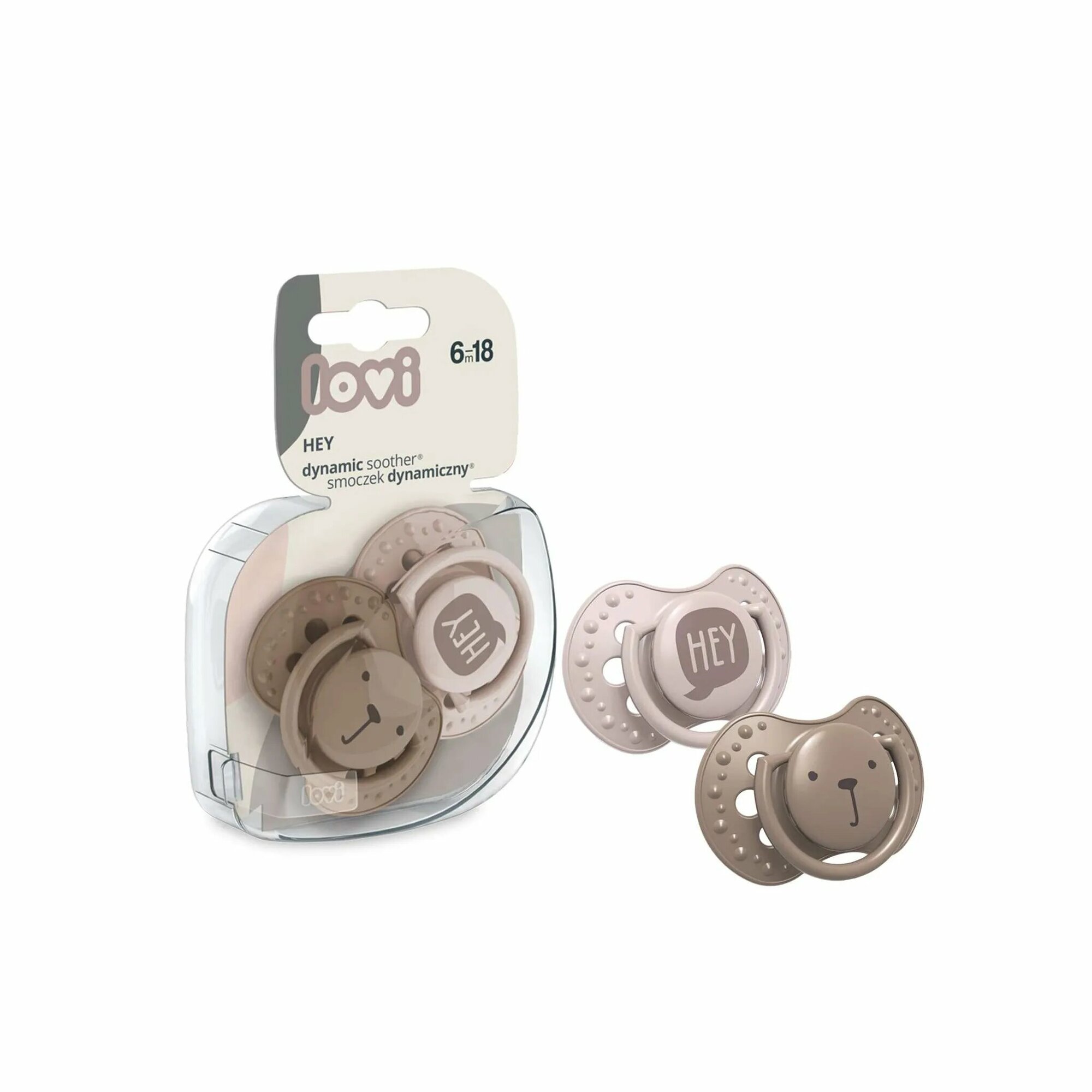 Пустышка силиконовая Lovi Hey динамическая 6-18 мес., 2 шт., розовый