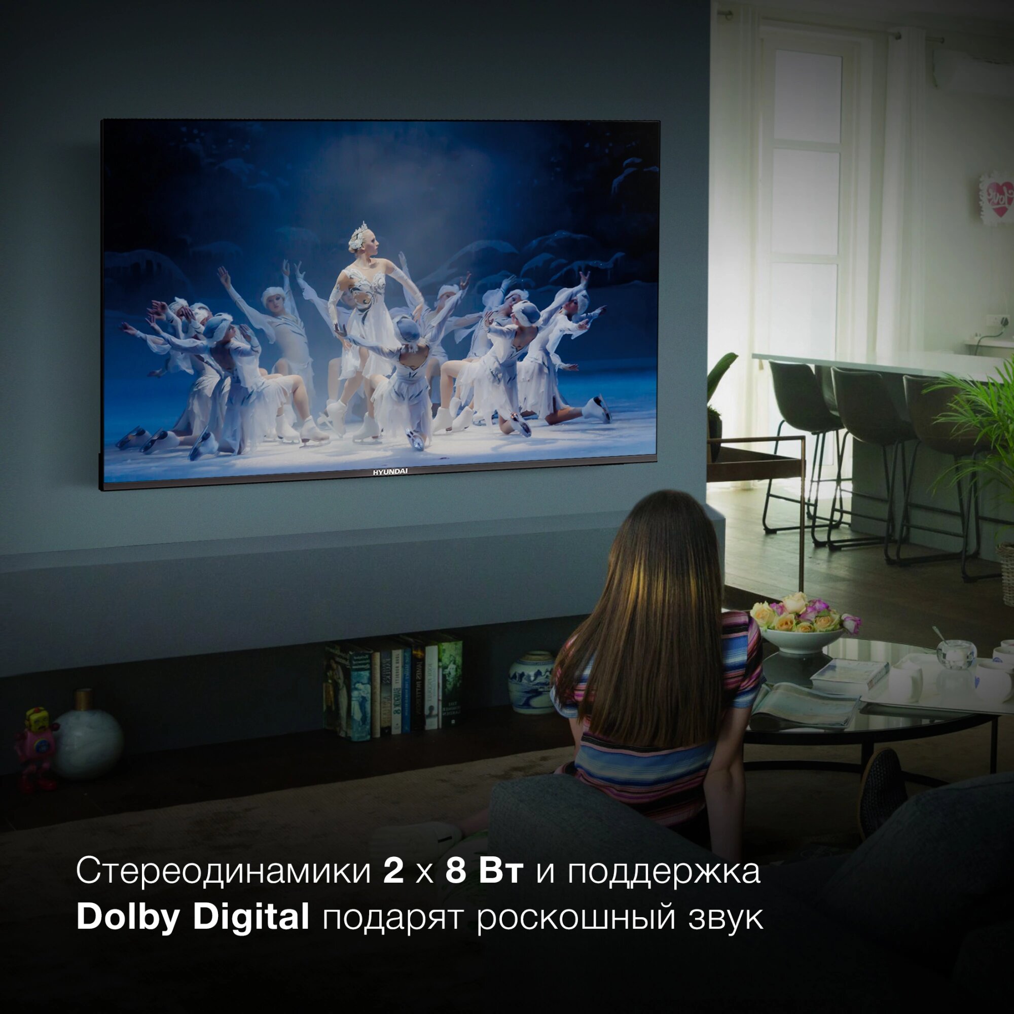 Телевизор Hyundai H-LED65OBU7700 Android TV 4K UHD разрешение 3840x2160 65 частота обновления 120 HDR 900 кд/м2 178 градусов 1500:1