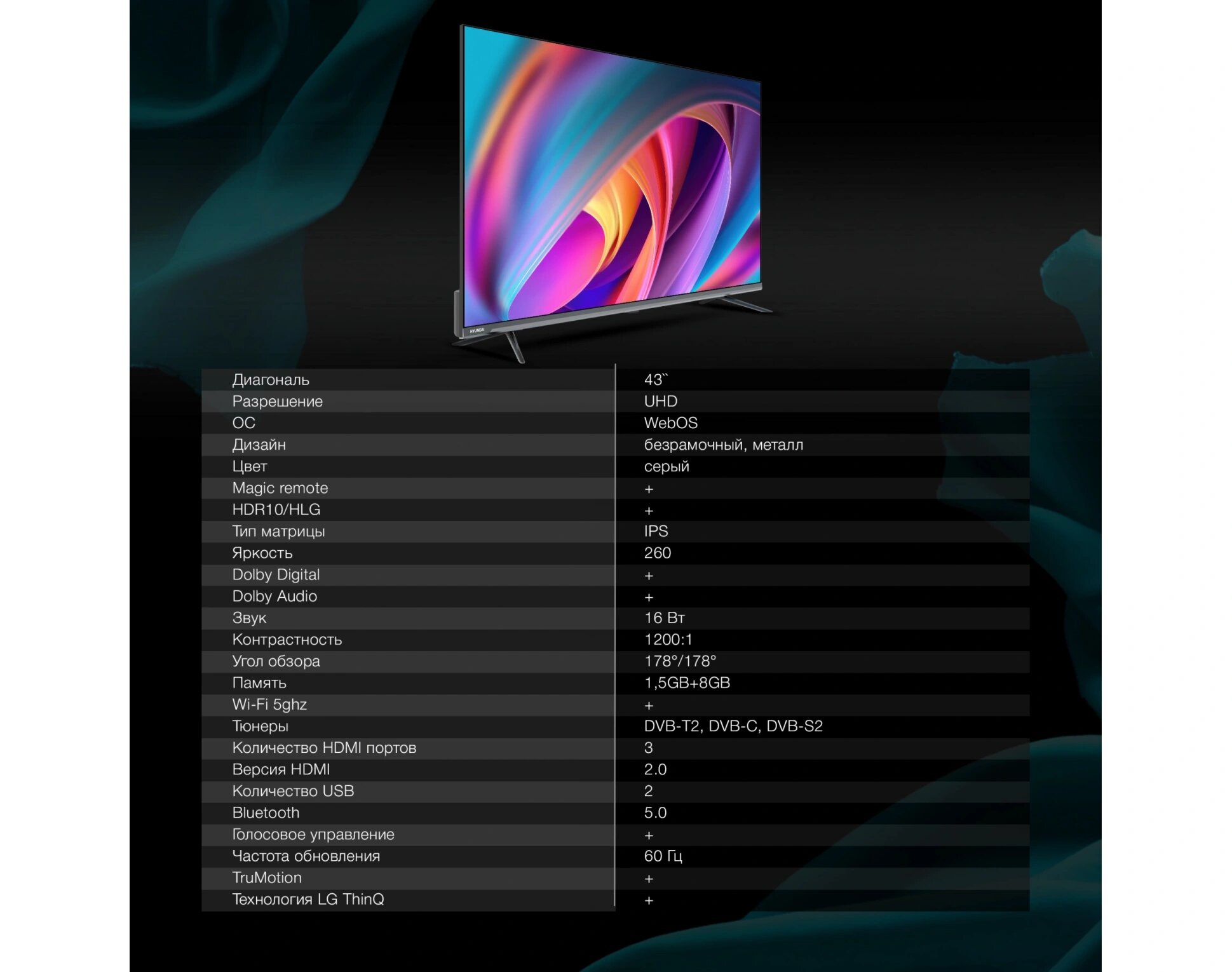 Сохранить43" Телевизор Hyundai H-LED43BU7100, 4K Ultra HD, серый, смарт ТВ, WebOS интересное: