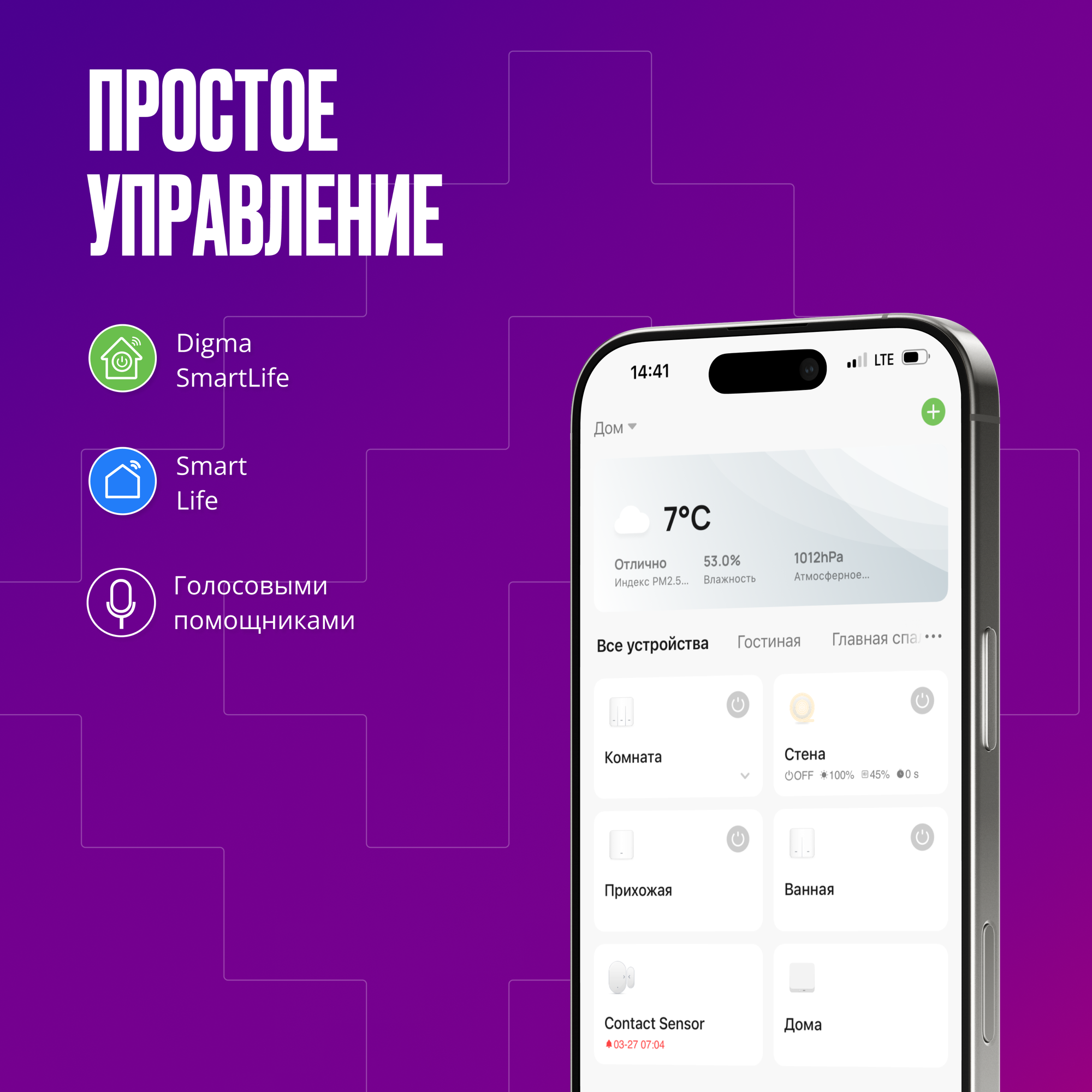 | Минусы: | Производитель забыл упомянуть что через Smart life не подключается. Только через DIGMA. Можете даже не пытаться через смарт, сразу дигма качайте